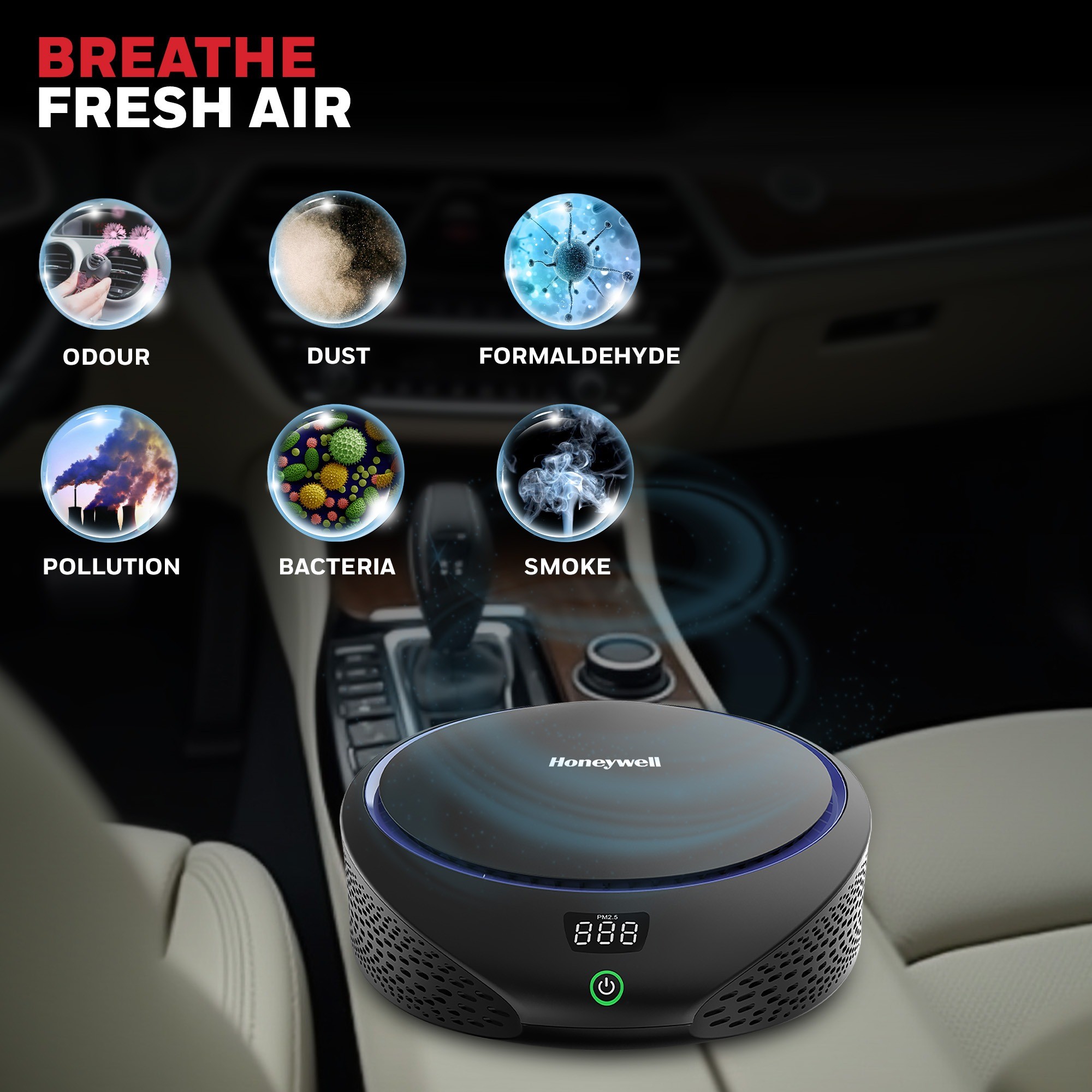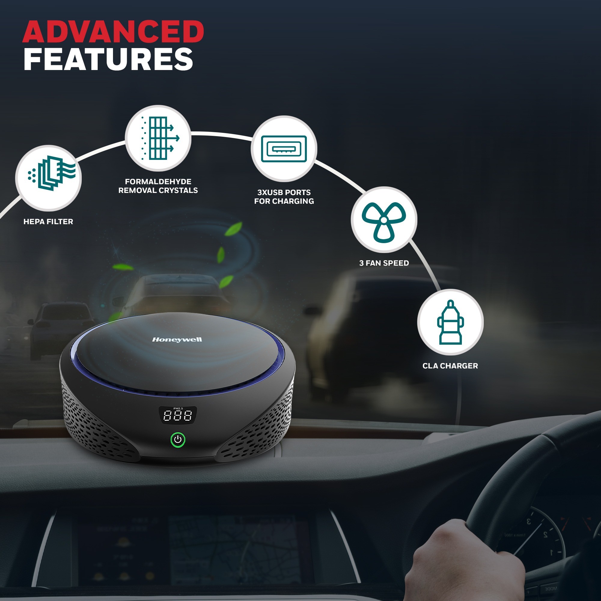 Honeywell Move Pure 5 Car Air Purifier เครื่องฟอกอากาศ สำหรับติดตั้งในรถยนต์ ของแท้ ประกันศูนย์ 2ปี