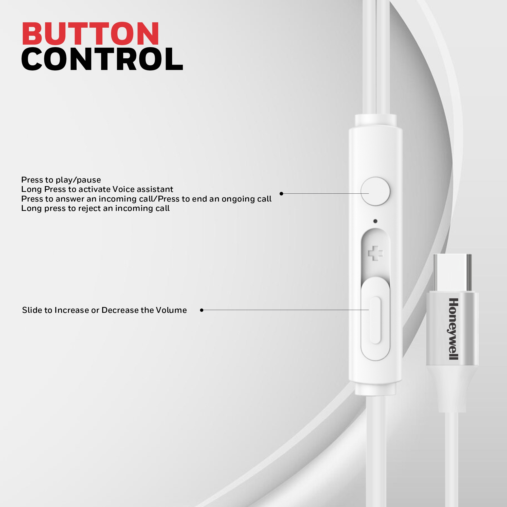 🔶Honeywell Suono P60 Wired Earphones Type-C [White, Blue, Red] หูฟังมีสาย ของแท้ ประกันศูนย์ 1ปี🔶