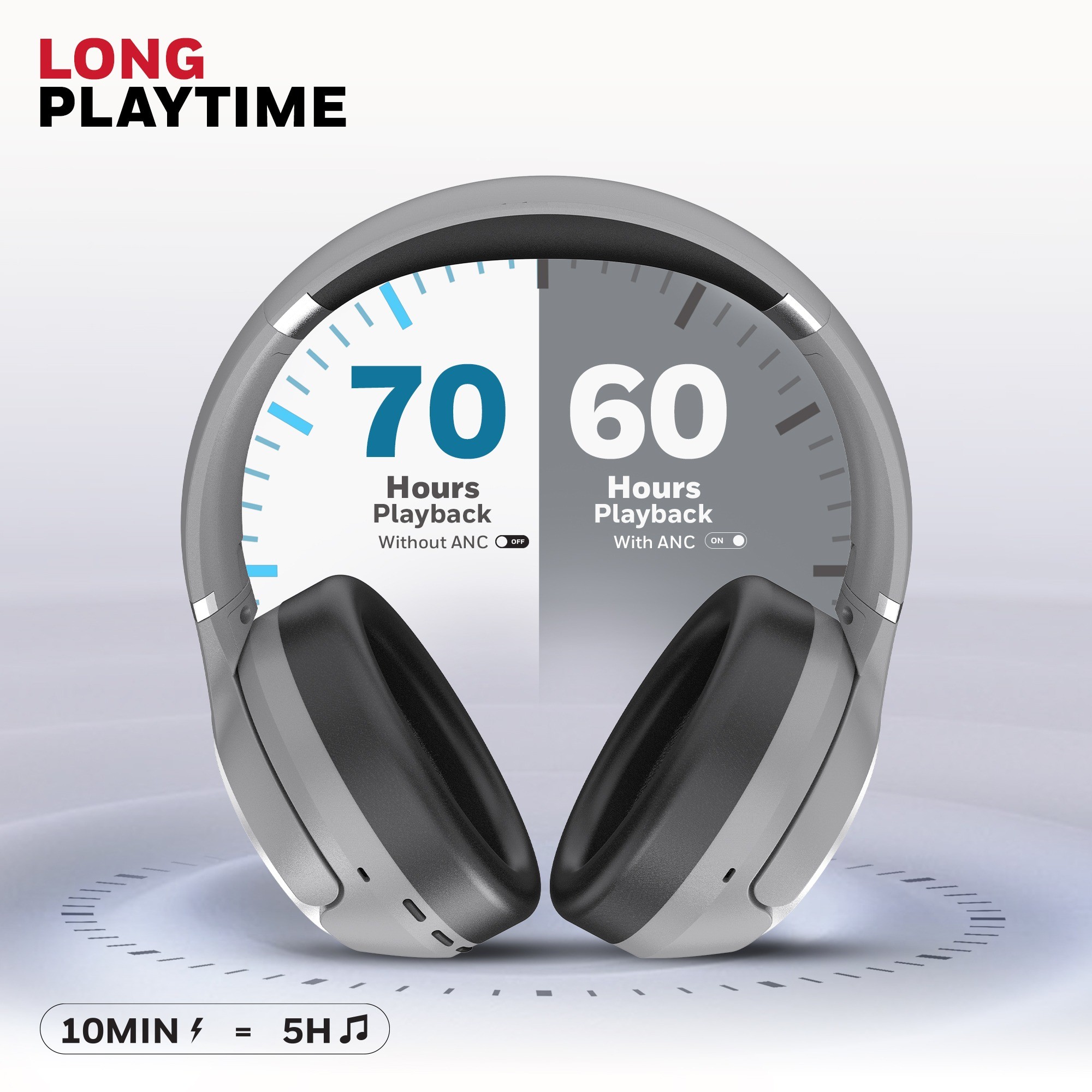 ใช้งานได้สูงสุด 60 ชั่วโมงเมื่อเปิด ANC หรือ 70 ชั่วโมงเมื่อปิด ANC การชาร์จเพียง 10 นาทีสามารถใช้งานได้นานถึง 5 ชั่วโมง และการชาร์จเต็มใช้เวลาเพียง 1.5 ชั่วโมง
