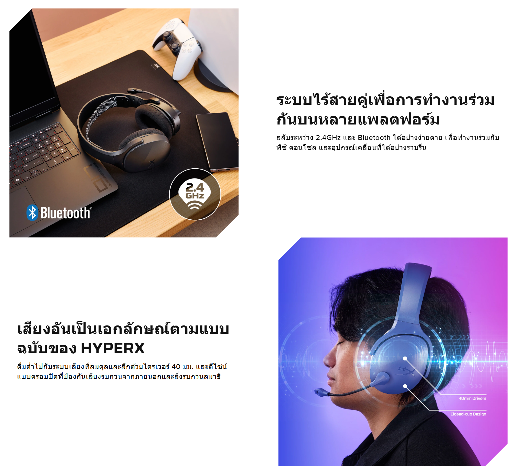 ✅ สามารถใช้งานไร้สายได้ทั้งแบบ USB-Dongle 2.4GHz และบลูทูธ