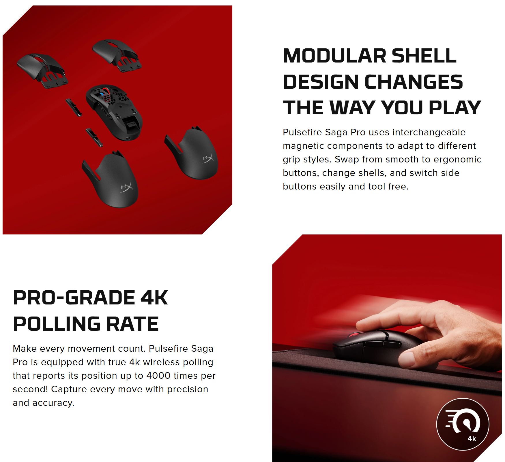 🔹 Polling rate: Up to 4000Hz (2.4G – Wireless)