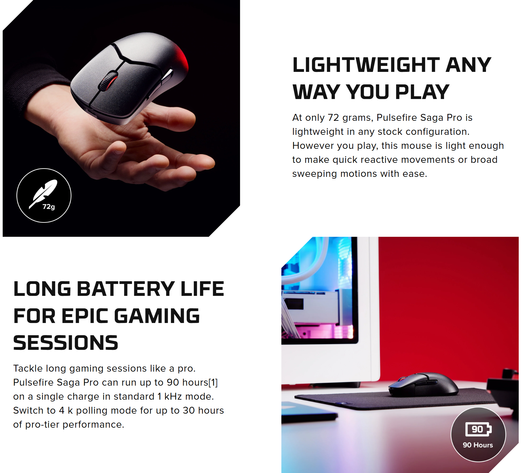 🔹 Battery life: Up to 90 hours (1000Hz)