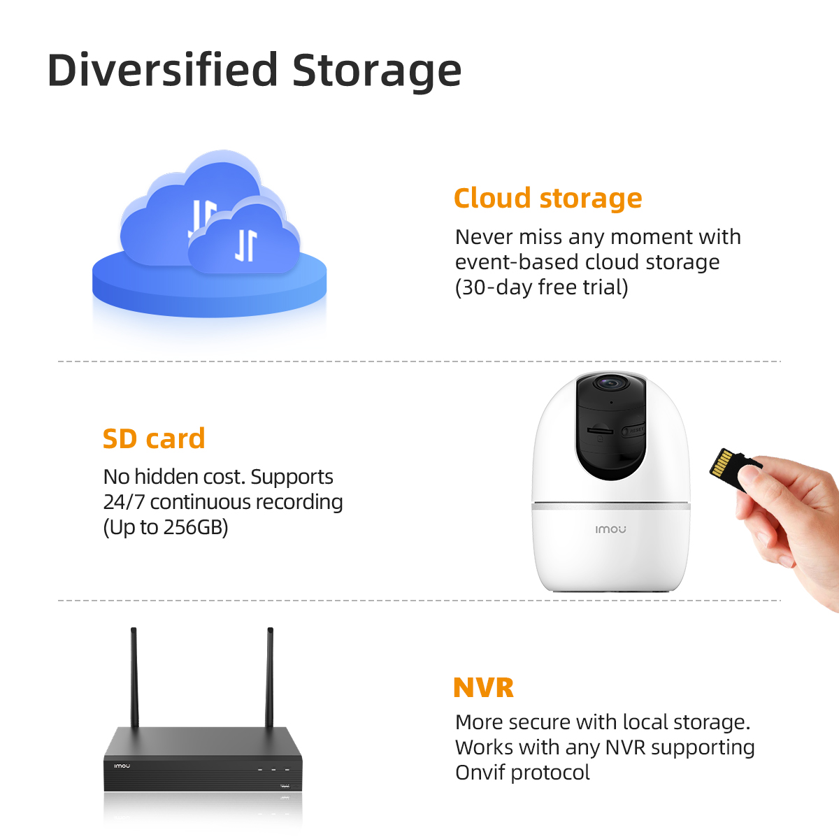 ✅ Diversified Storage(NVR+Cloud Storage+Micro SD Card(up to 256GB))