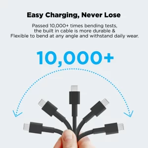 ✅ มาพร้อมสาย Built-in USB-C ยาว 1.5M มีความทนทาน แข็งแรง ผ่านการทดสอบการบิดงอมากกว่า 10,000 ครั้ง และ ผ่านการทดสอบแรงตกกระแทกที่ความสูง 1.5 เมตร