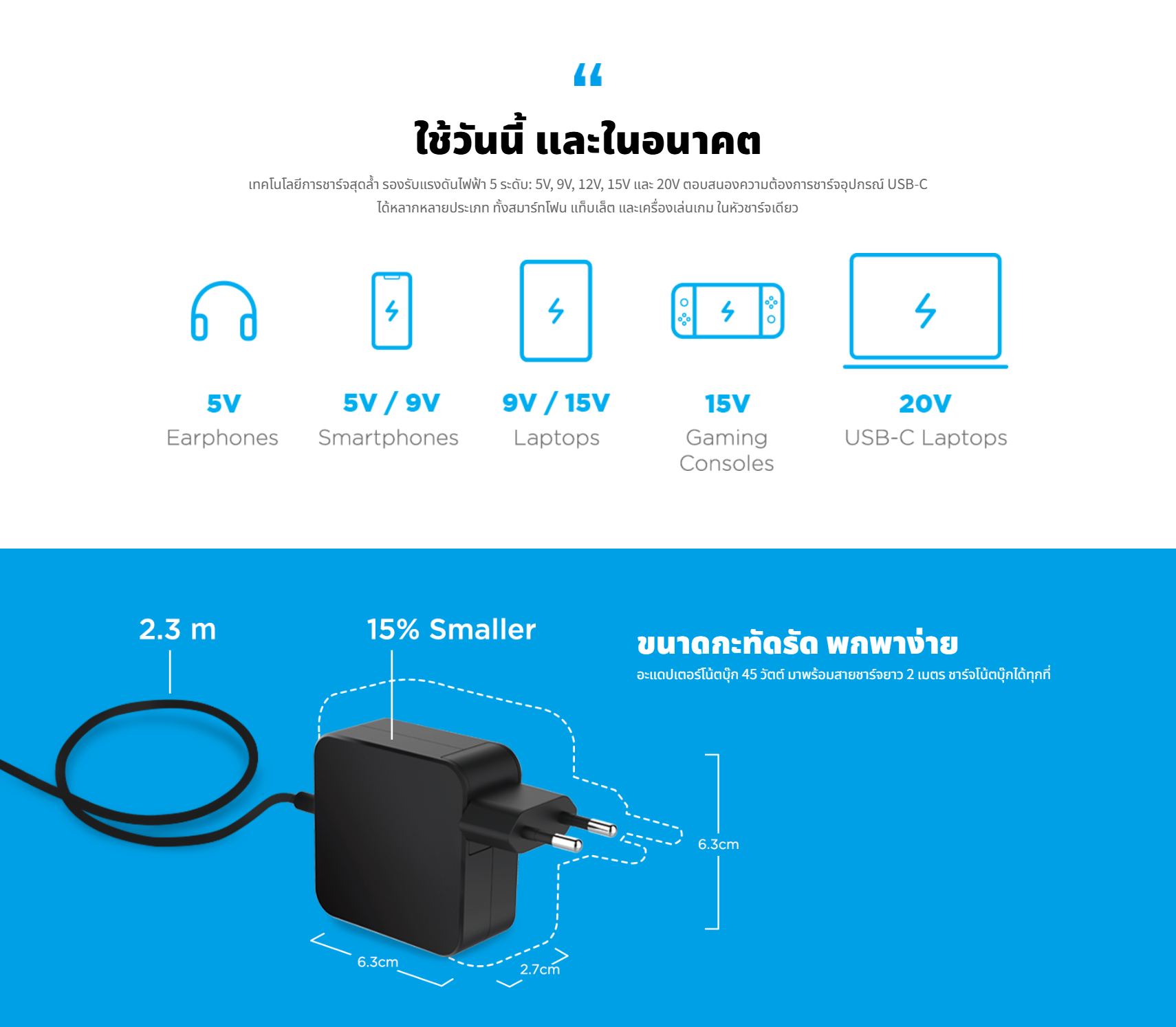 ✅ Compact Size: ขนาดเล็กกะทัดรัดกว่าอะแดปเตอร์มาตรฐานทั่วไป ประหยัดพื้นที่ในกระเป๋า