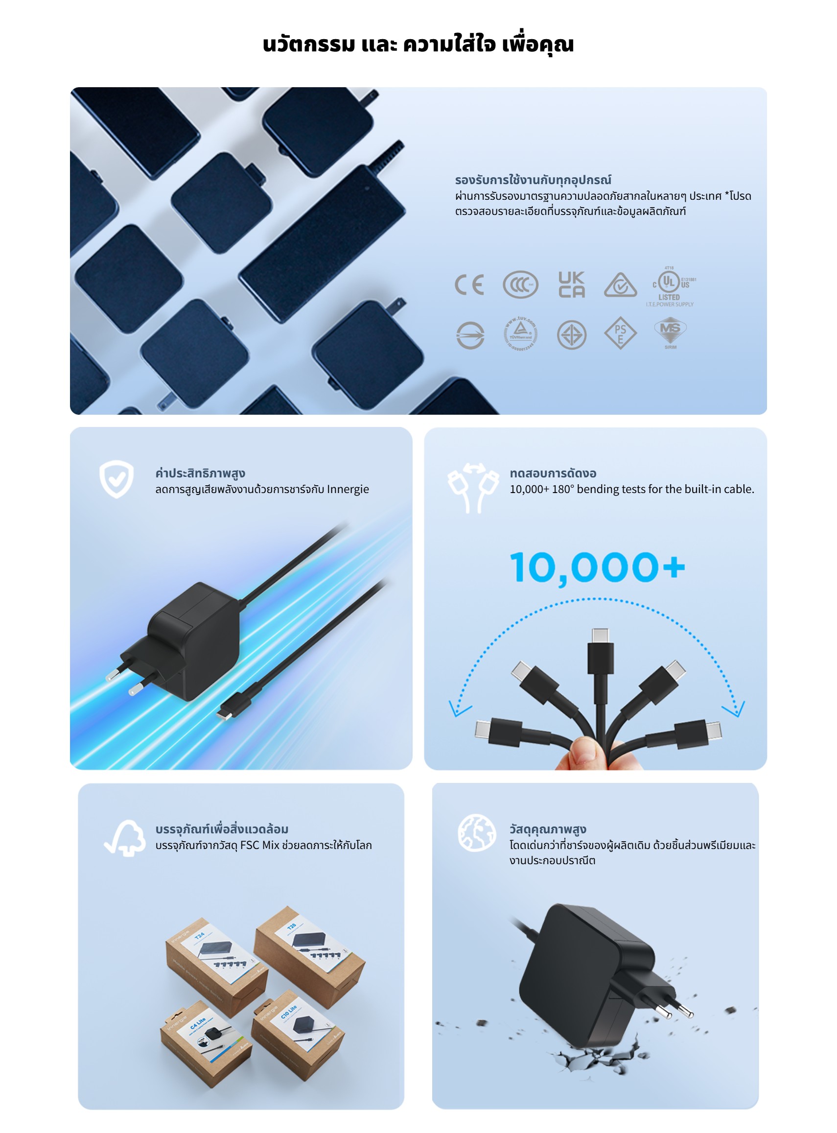 📌 Charging Protocol: รองรับ PD 3.0 (Power Delivery) เพื่อการชาร์จที่เหมาะสมกับแต่ละอุปกรณ์อัตโนมัติ