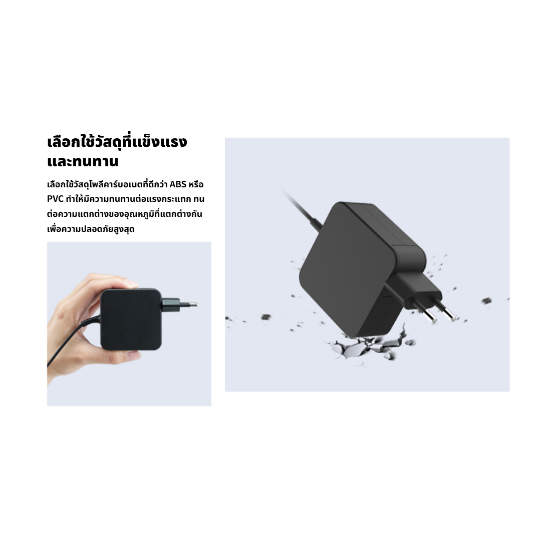 – มีสายชาร์จในตัวยาวประมาณ 2.3 เมตร Passed 10,000+ bending test