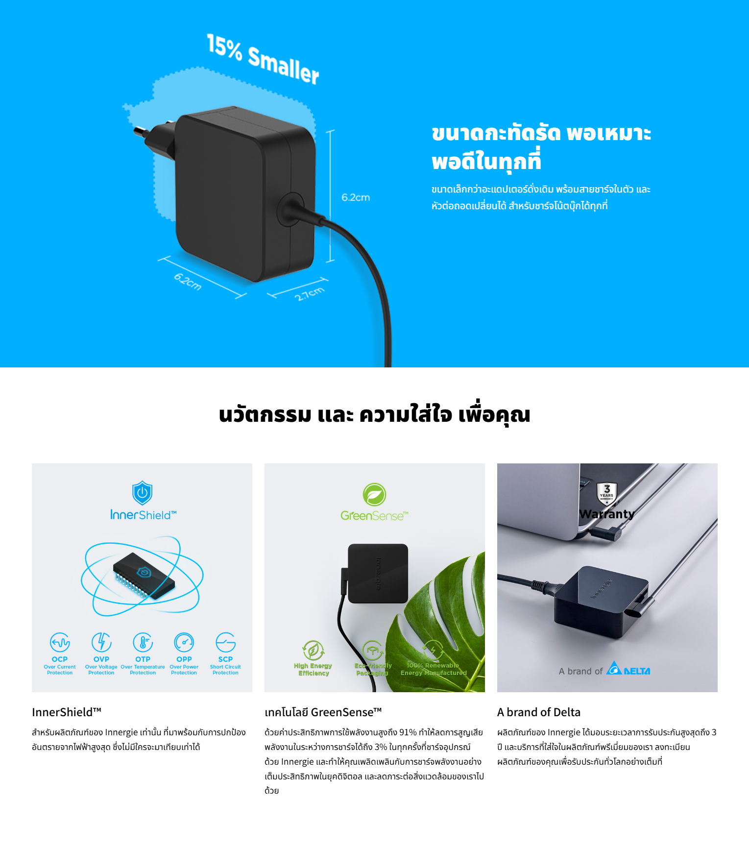 🔶Innergie T6 Power Adapter 65W For Lenovo อะแดปเตอร์ชาร์จไฟ ของแท้ ประกันศูนย์รวม 3ปี🔶