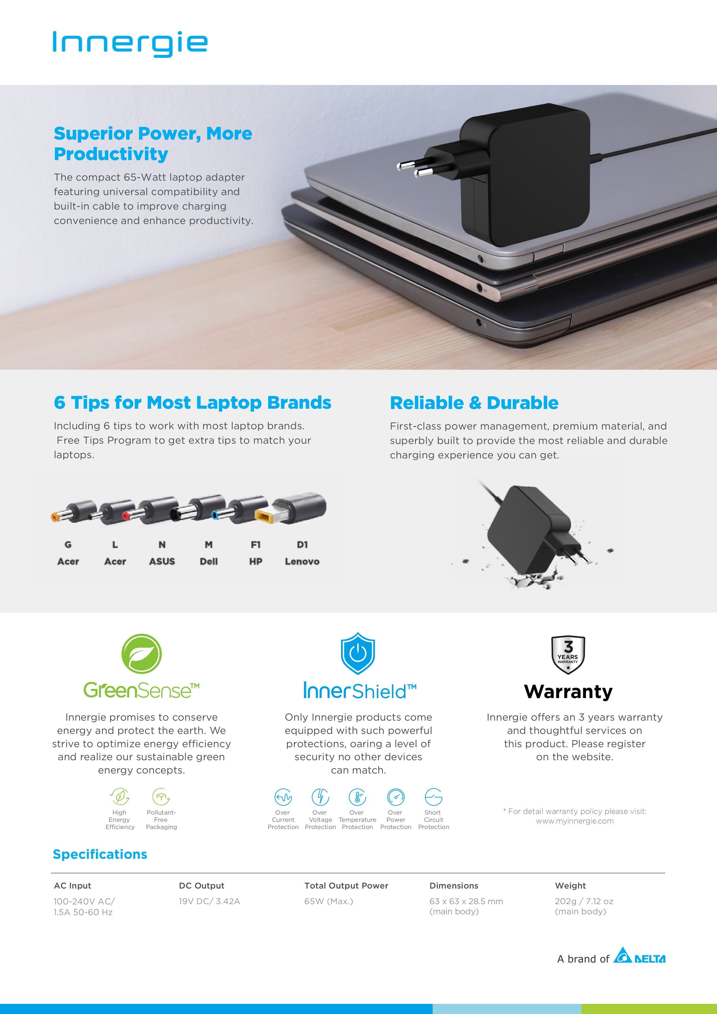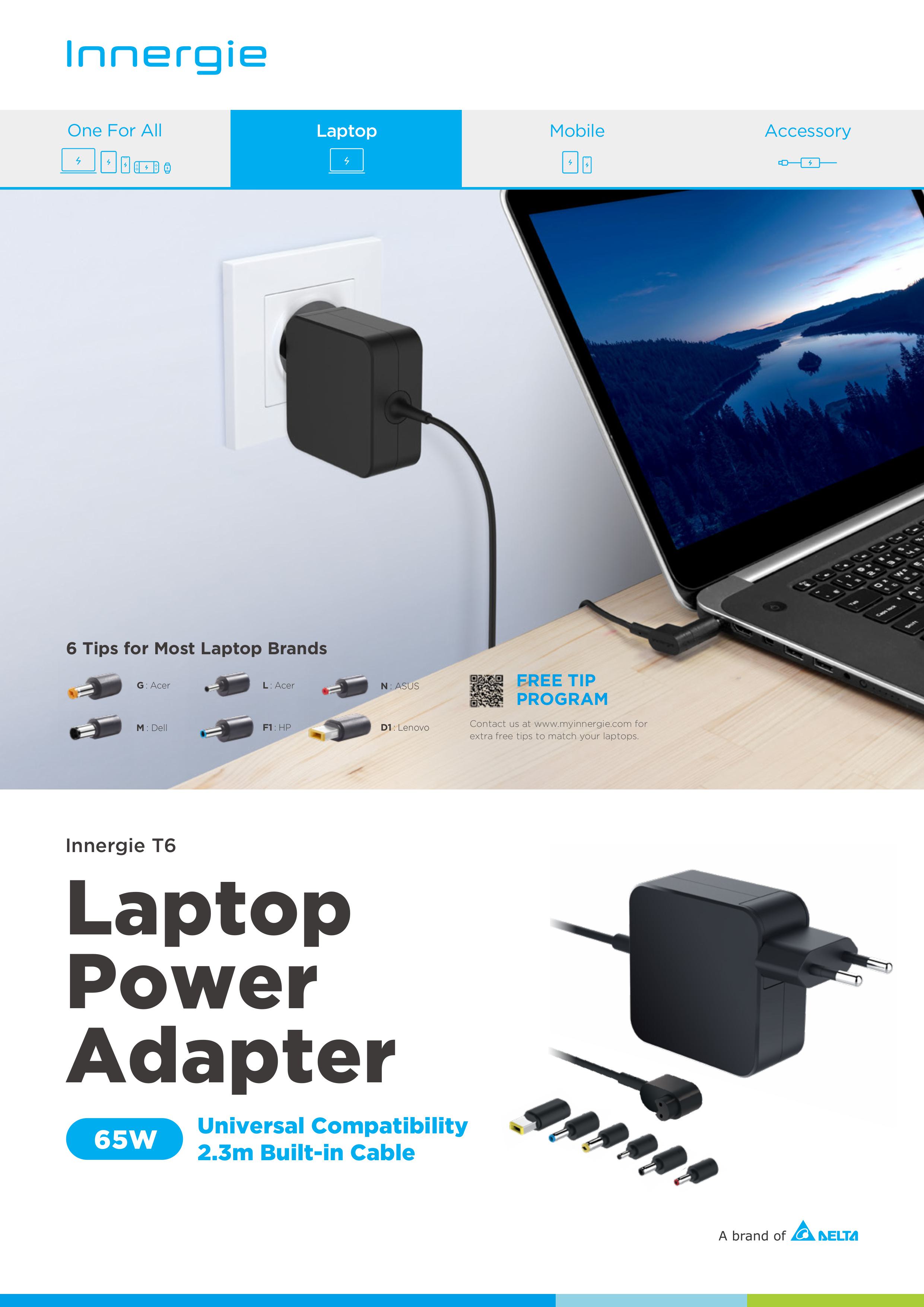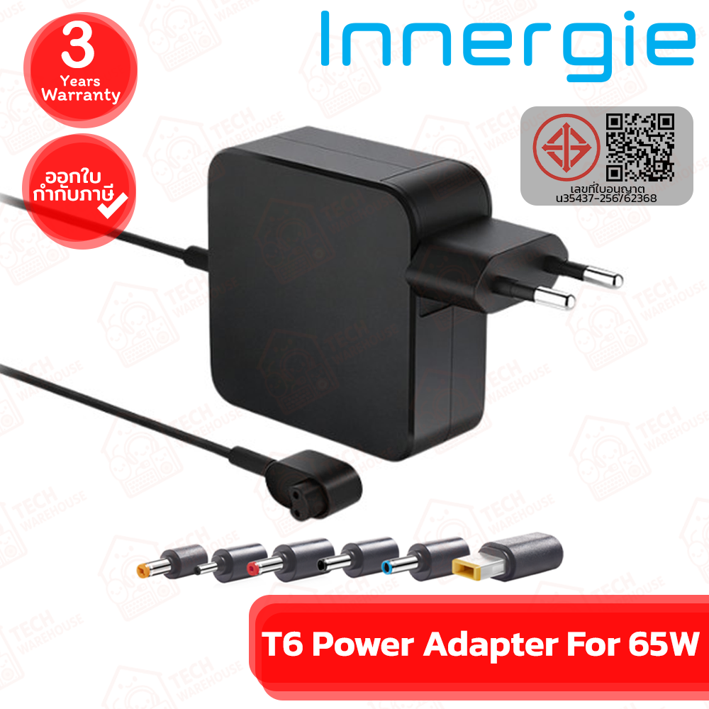 🔶Innergie T6 Power Adapter For 65W ใช้ได้กับ Acer, Asus, Dell, HP, Lenovo อะแดปเตอร์ชาร์จไฟ ของแท้ ประกันศูนย์ 3ปี🔶