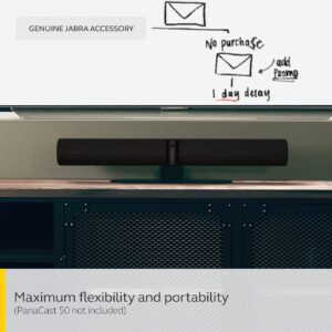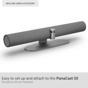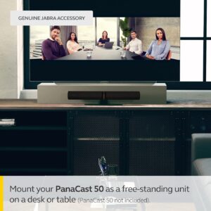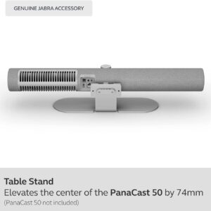 In the box: 1 x Jabra PanaCast 50 Table Stand, Dimensions: L=36cm x W=12cm x H=9.6cm, PanaCast 50 elevation by 7.4cm, Colour: ฺBlack