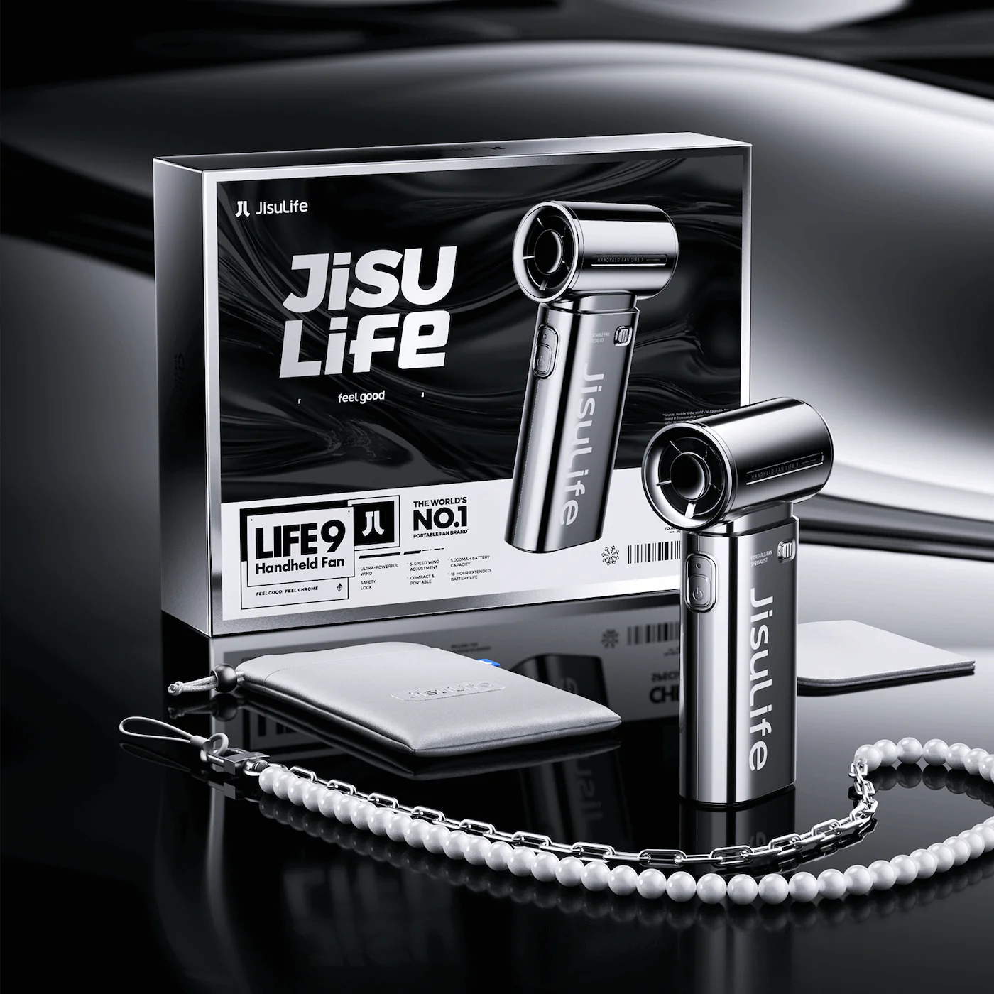 ✅ พัดลมมือถือดีไซน์พิเศษ สี Chrome เคลือบสีเงินสุดพรีเมี่ยม