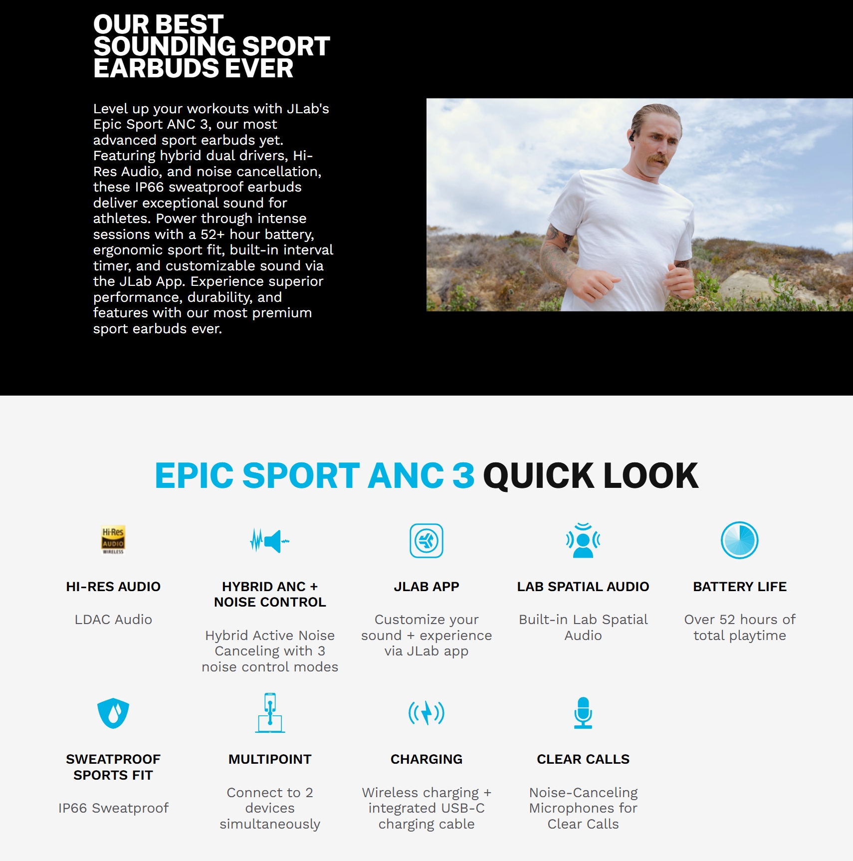 JLAB Epic Sport 3 True Wireless Earbuds หูฟังไร้สาย ของแท้ ประกันศูนย์ 2ปี