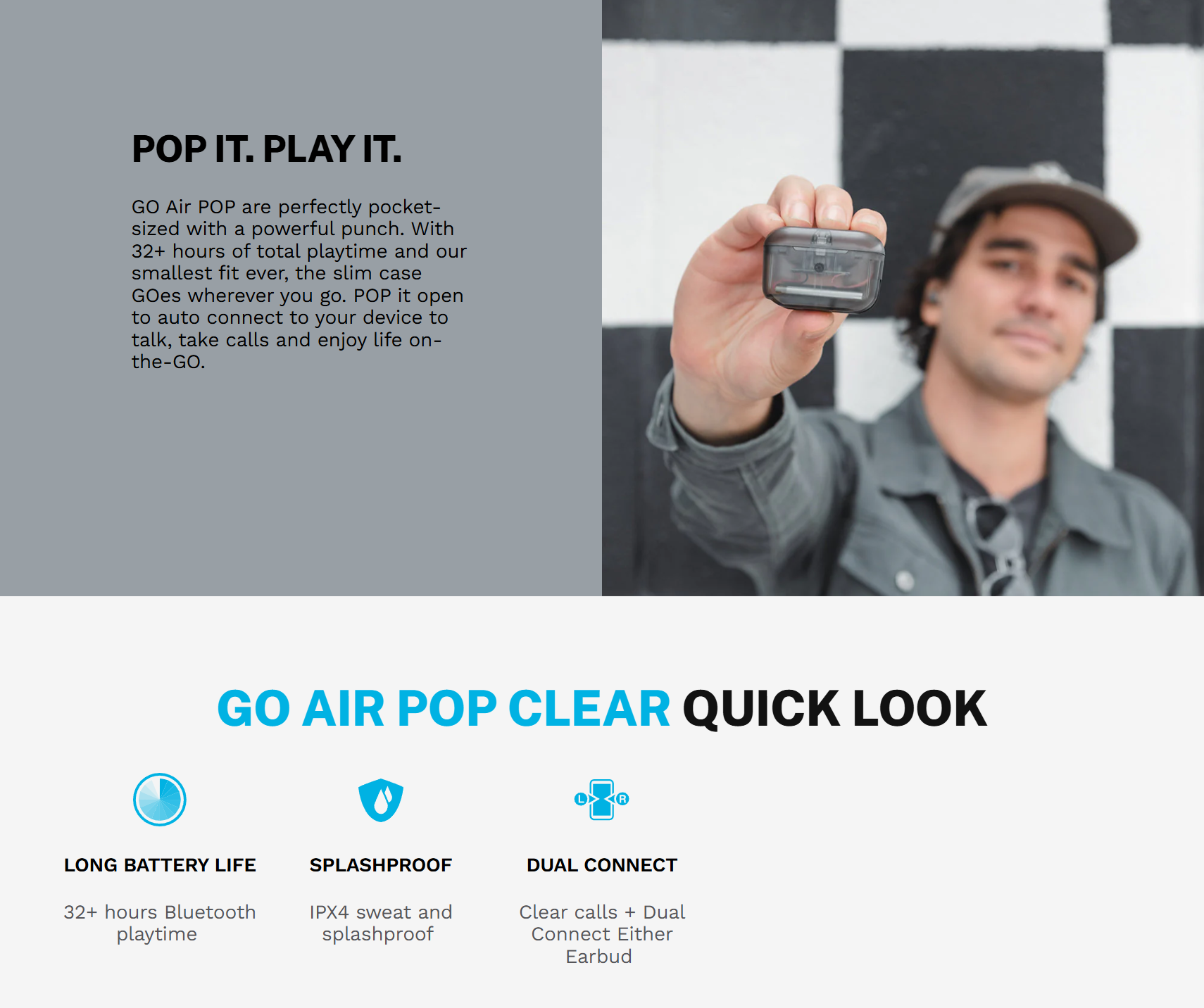 🔶JLAB Go Air Pop True Wireless Earbuds (Clear) หูฟังไร้สาย สีใส ของแท้ ประกันศูนย์ 2ปี🔶