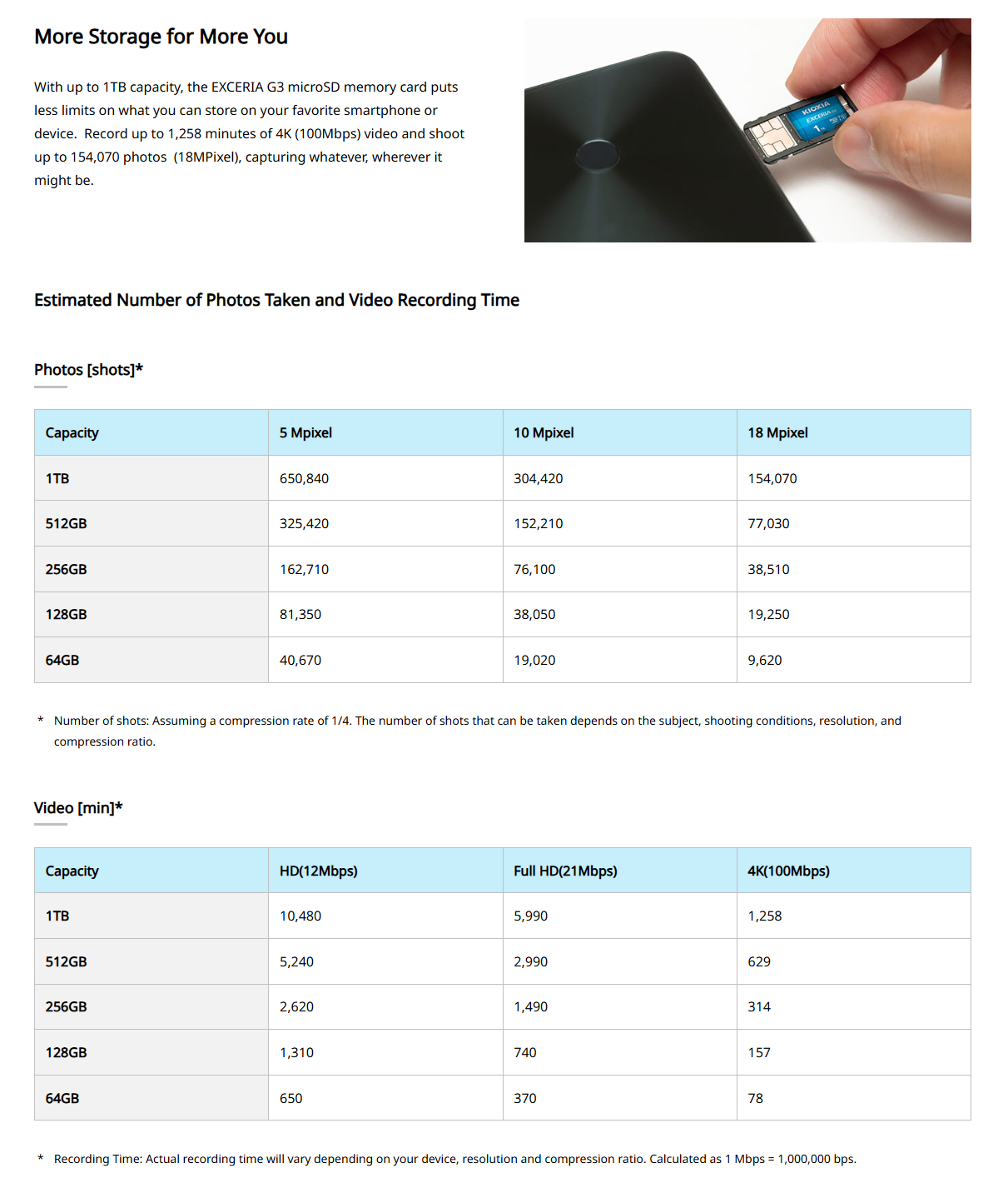 💠 Capacity – 128GB, 256GB (microSDXC)