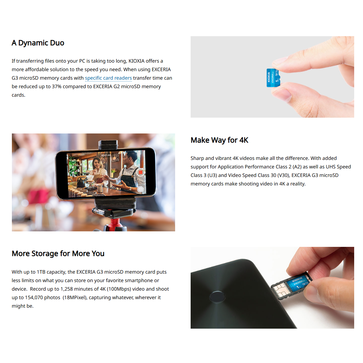 🔶KIOXIA EXCERIA G3 MicroSD CL10 UHS-I U3 V30 4K [128GB, 256GB] เมมโมรี่การ์ด การ์ดความจำ ของแท้ ประกันศูนย์ 5ปี🔶