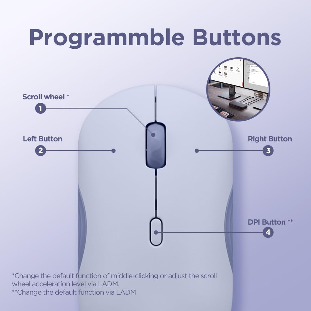 💠 Number of Button – 6 buttons (left, right, scroll click, DPI, channel switch and pairing, on/off)