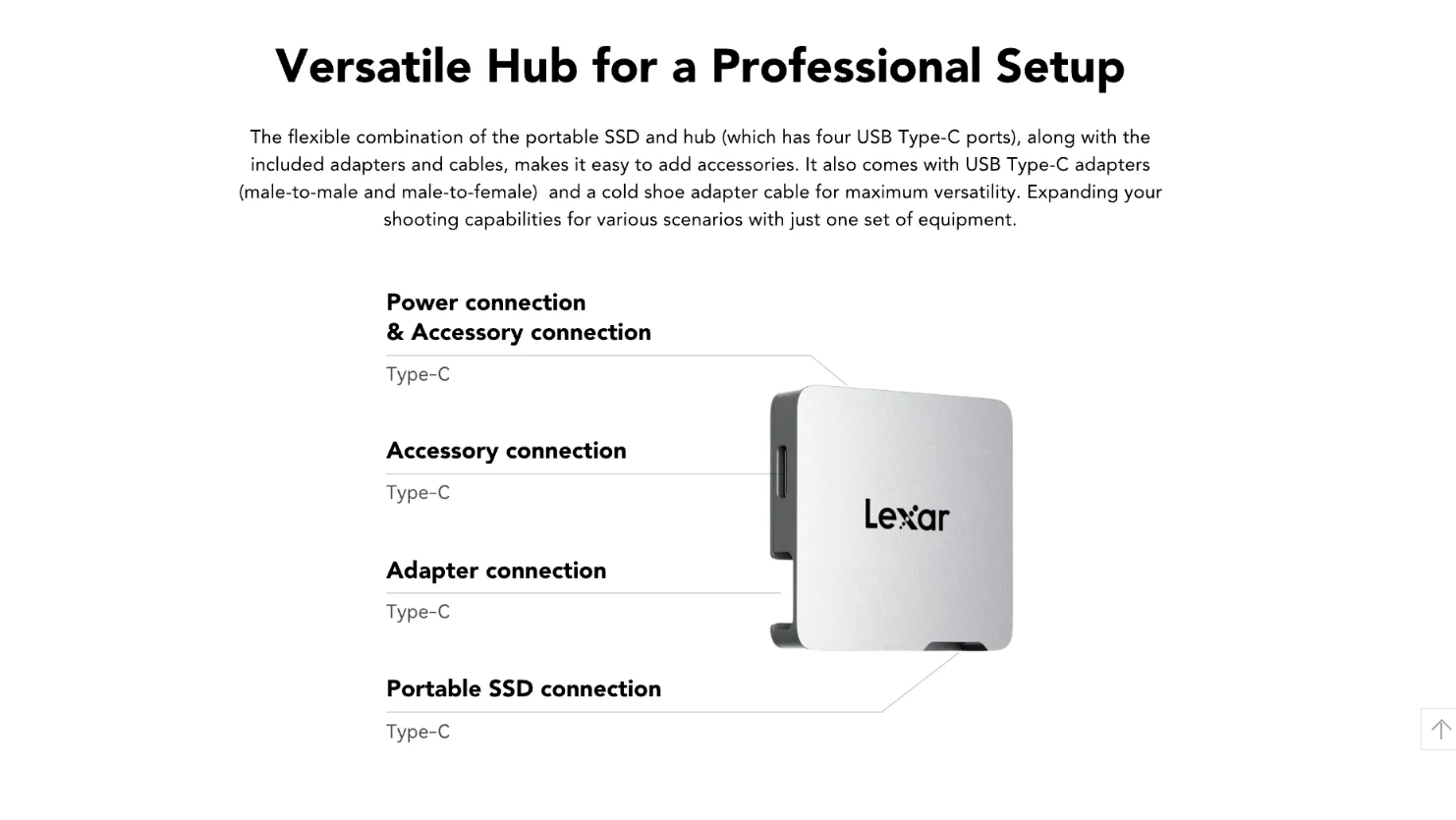 The flexible combination of the portable SSD and hub (which has four USB Type-C ports), along with the