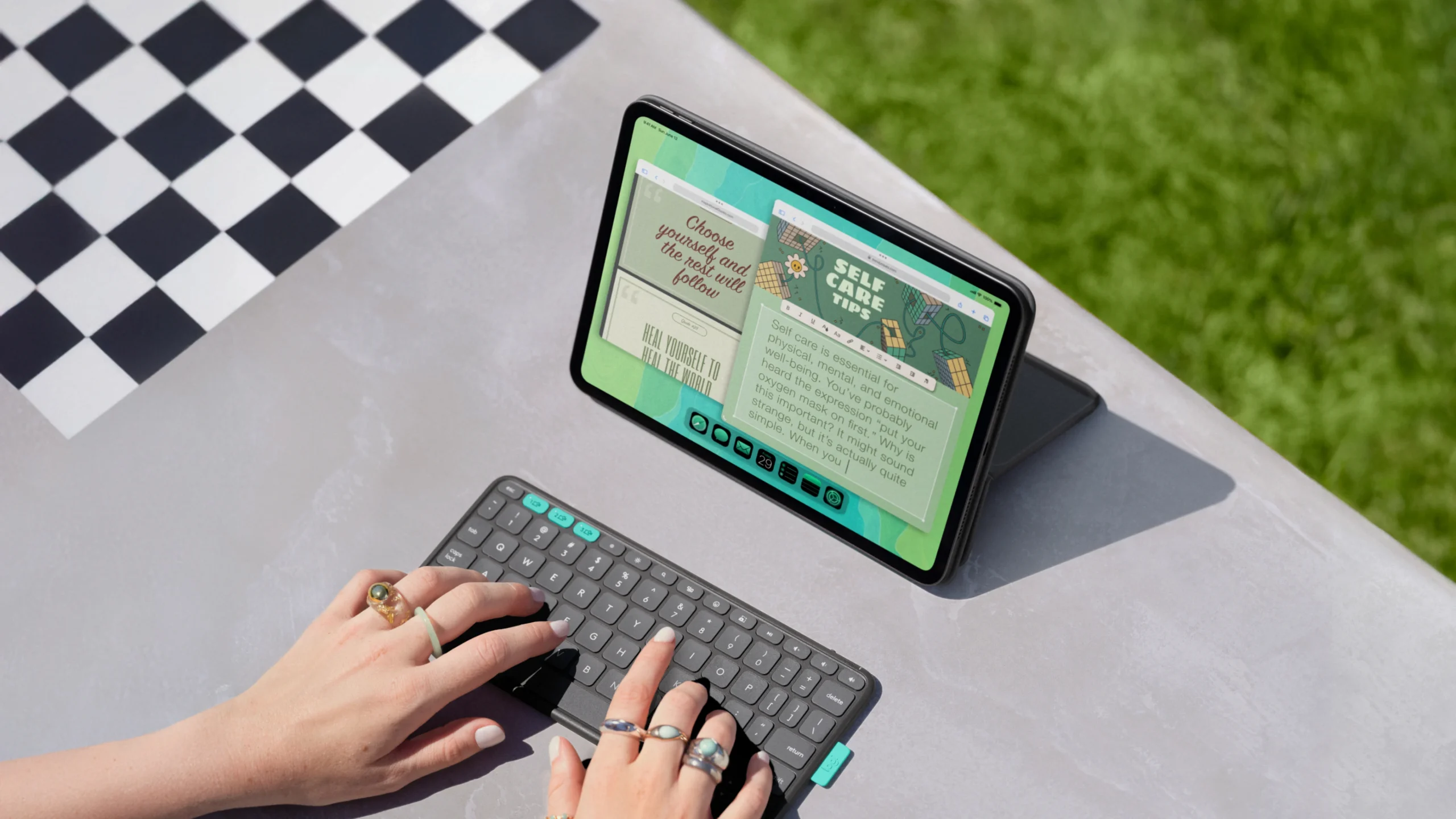 🔹 ชนิดคีย์บอร์ด: คีย์บอร์ดไร้สาย Bluetooth, แถวปุ่มลัดแบบมาตรฐานของ iPadOS