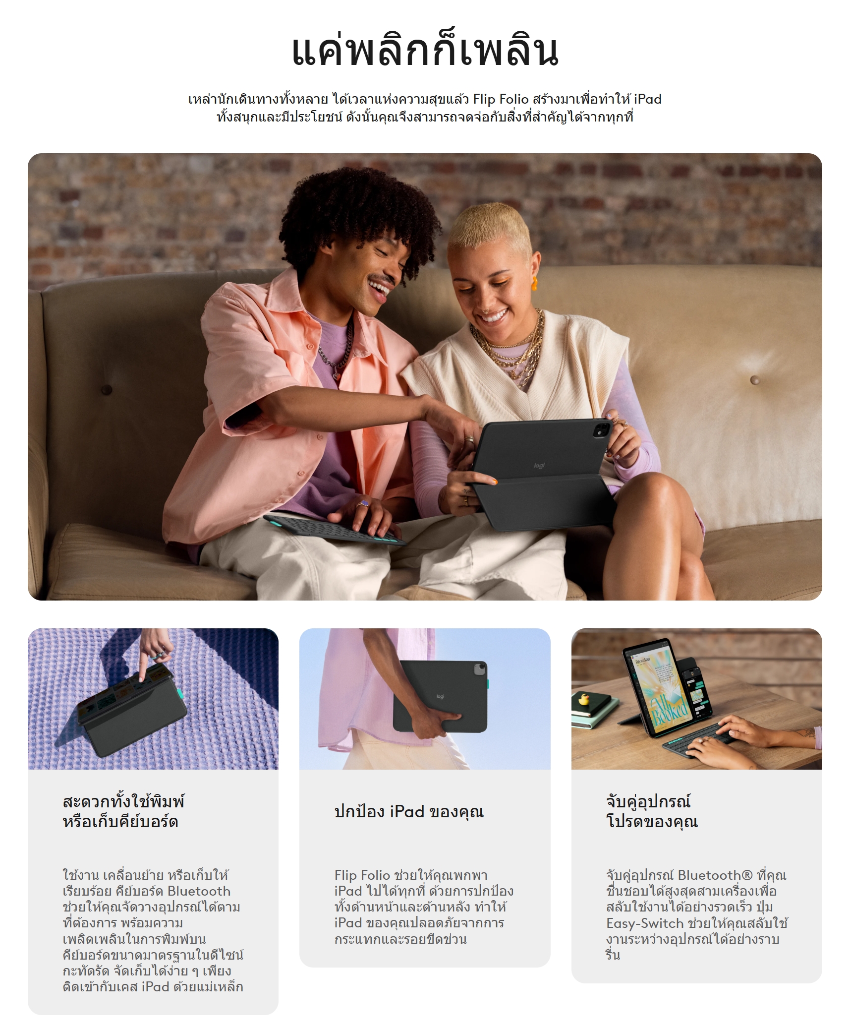 🔶Logitech Flip Folio for Ipad Pro/Ipad Air 13-inch [Graphite] [TH/EN] เคส สำหรับ Ipad ของแท้ ประกันศูนย์ 1ปี🔶