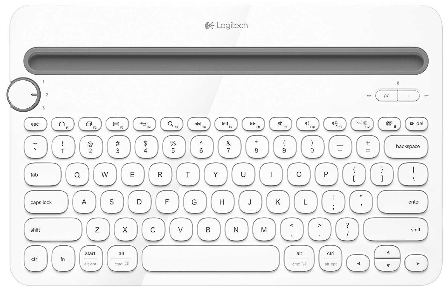 Logitech Bluetooth Multi-Device Keyboard K480 แป้นพิมพ์สกรีน TH/EN (White) คีย์บอร์ดไร้สายแบบบลูทูธ สำหรับคอมพิวเตอร์ แท็บเล็ต และสมาร์ทโฟน โดยสามารถเชื่อมต่อแบบไร้สายบนคลื่นบลูทูธความถี่ 2.4G สามารถใช้งานได้ดีในระยะ 10 เมตร ซึ่งสามารถใช้งาน อุปกรณ์ได้ 3 เครื่อง โดยสลับการใช้ระหว่างอุปกรณ์ได้อย่างไร้รอยต่อ ด้วยการหมุนลูกบิดไปยังเครื่องที่ต้องการ