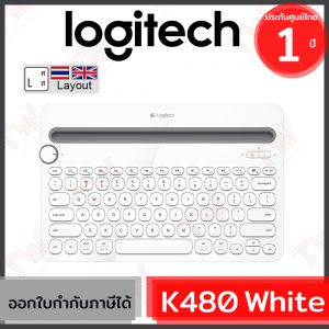 Logitech Bluetooth Multi-Device Keyboard K480 แป้นพิมพ์สกรีน TH/EN (White) มีร่องสำหรับวางอุปกรณ์ที่ทำมุมองศาพอดีกับสายตา ง่ายสำหรับการใช้งานร่วมกับแท็บเล็ตและสมาร์ทโฟน รองรับการใช้งานร่วมกับหลากหลายระบบปฎิบัติการ เช่น Windows, Mac OS, Android และ iOS มาพร้อมตัวอักษรสกรีนภาษาไทยเพื่อให้คุณใช้งานได้อย่างลงตัว