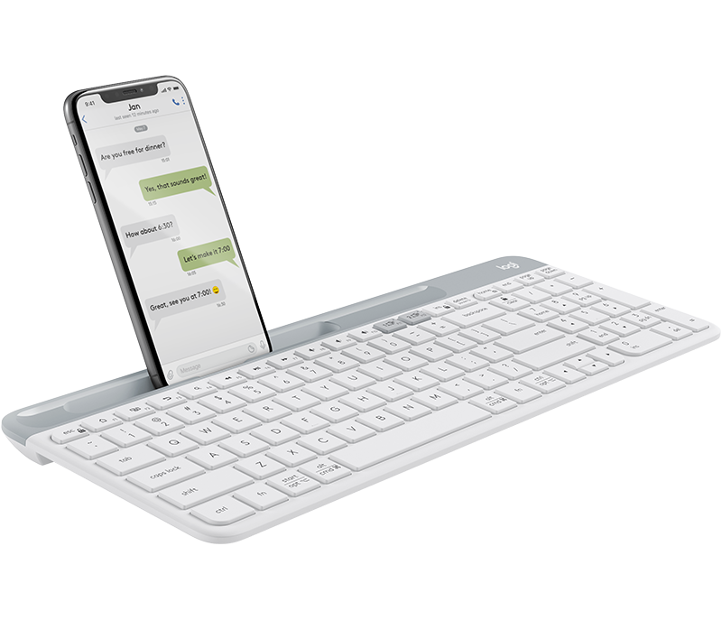 - คีย์บอร์ดไร้สายสำหรับคอมพิวเตอร์ แท็บเล็ต และสมาร์ทโฟน ดีไซน์กะทัดรัด พร้อมช่องวางอุปกรณ์