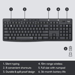 เสียงรบกวนน้อยลง โฟกัสได้มากขึ้นมีสมาธิกับงานของคุณอยู่เสมอและตัดสิ่งที่ทำให้เสียสมาธิออกไป พบกับ Logitech MK295 Silent Wireless Combo ที่มี SilentTouch ซึ่งเป็นเทคโนโลยีสุดพิเศษของ Logitech ที่กำจัดเสียงรบกวนของคีย์บอร์ดและเมาส์ได้มากกว่า 90% ความรู้สึกในการคลิกและการพิมพ์ยังคงเดิมเหมือนกับคอมโบอุปกรณ์รุ่นที่ขายดีที่สุดในโลก เพียงแต่ไม่มีเสียงคลิกหรือเสียงพิมพ์มากวนใจ