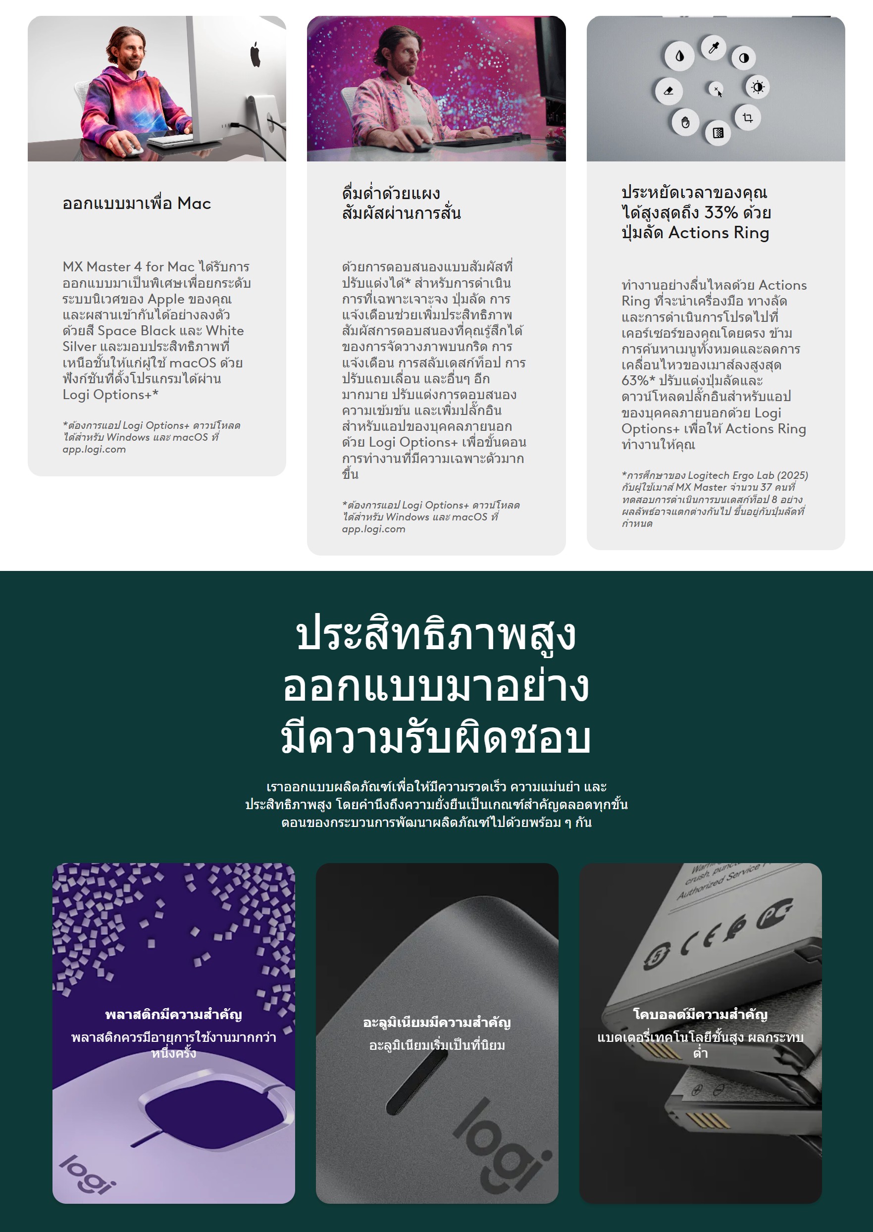 💠 Bluetooth: จำเป็น: Bluetooth Low Energy, macOS 13 หรือใหม่กว่า*, iPadOS 15 หรือใหม่กว่า** (*ปรับแต่งอุปกรณ์โดยติดตั้งแอป Logi Options+ ที่มีให้สำหรับ Windows และ macOS เวอร์ชันล่าสุด