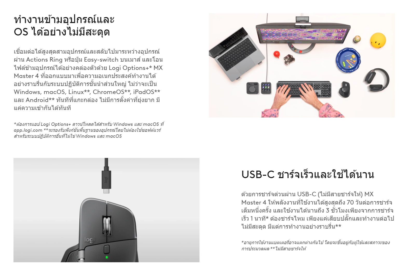 🔶Logitech MX Master 4 Wireless Mouse [Graphite, Pale Gray] เมาส์ไร้สาย ของแท้ ประกันศูนย์ 1ปี🔶