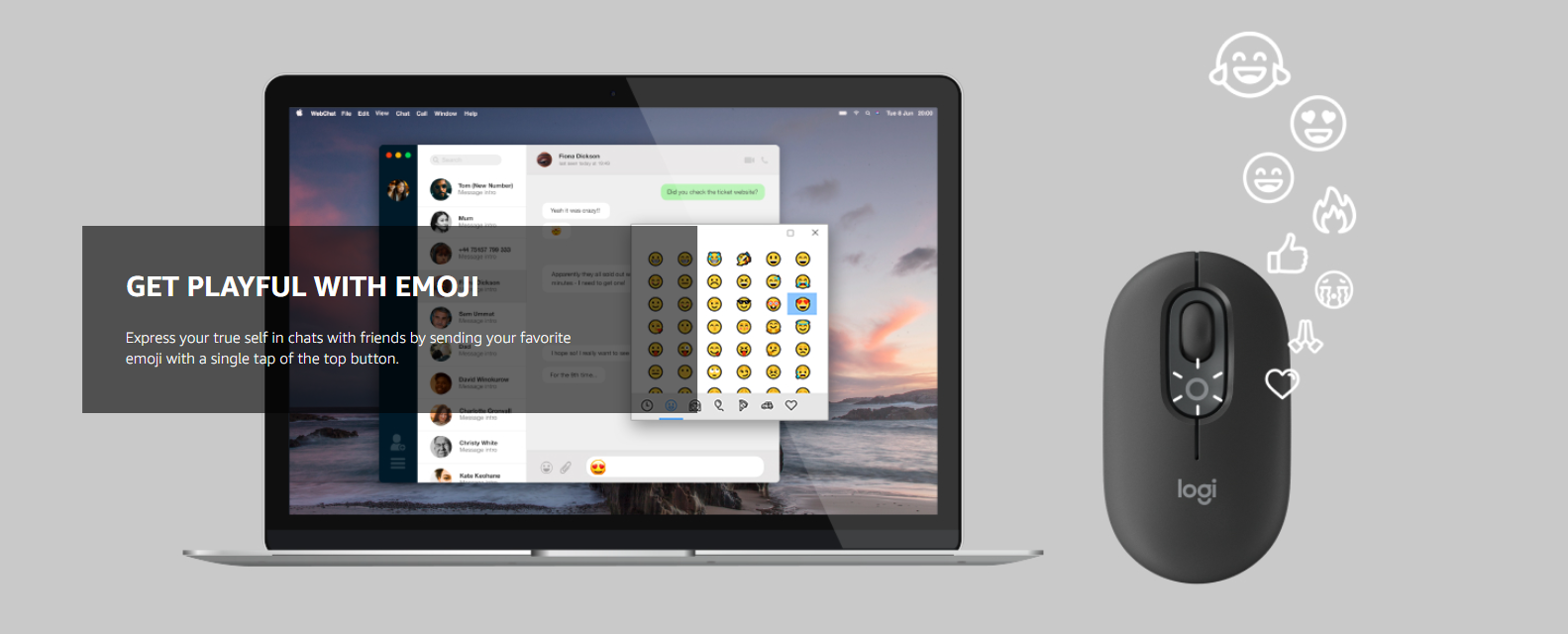 ✨✨ ทำความรู้จัก POP Mouse สนุกสนานระบบไร้สายที่ออกแบบมาเพื่อบุคลิกที่โดดเด่นบนเดสก์ท็อปและที่ไหน ๆ เลือก POP Mouse ที่คุณชอบที่สุดจากดีไซน์มากมาย และปรับแต่งเป็นของตัวเองด้วยการตั้งค่าอิโมจิแสนสนุก ✨✨