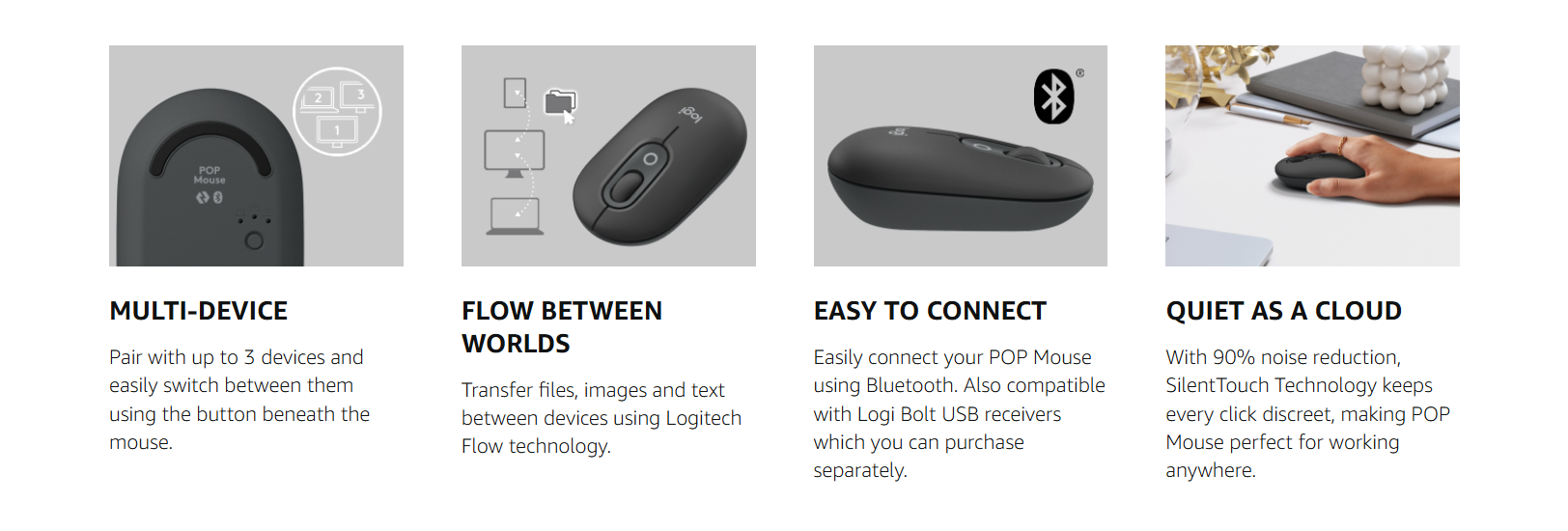 Logitech POP Mouse with emoji Bluetooth Mouse เมาส์ไร้สาย บลูทูธ ของแท้ [ให้เลือก 4 สี] ประกันศูนย์ 1ปี
