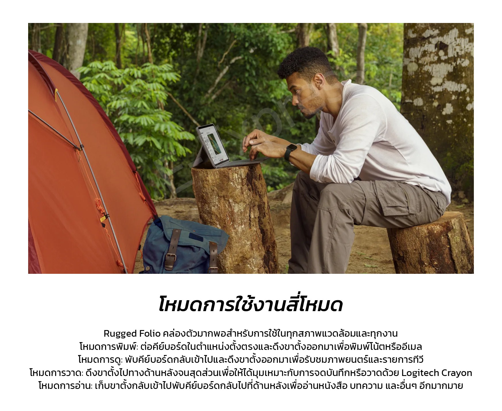 ✅ ดีไซน์บางเบาแต่ทนทาน พร้อมการปรับโหมดการใช้งานได้ถึง 4 รูปแบบคือ โหมดการพิมพ์ ดู วาด และอ่าน