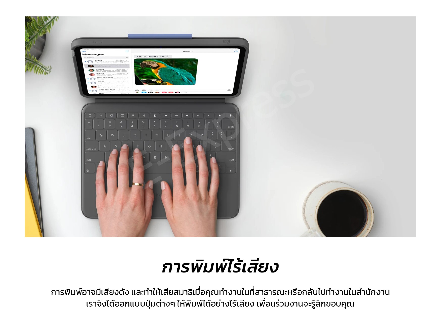 💠 พลังงานและการเชื่อมต่อ – เมื่อวาง iPad บนที่ว่างจะจับคู่และชาร์จไฟทันทีผ่าน Smart Connector