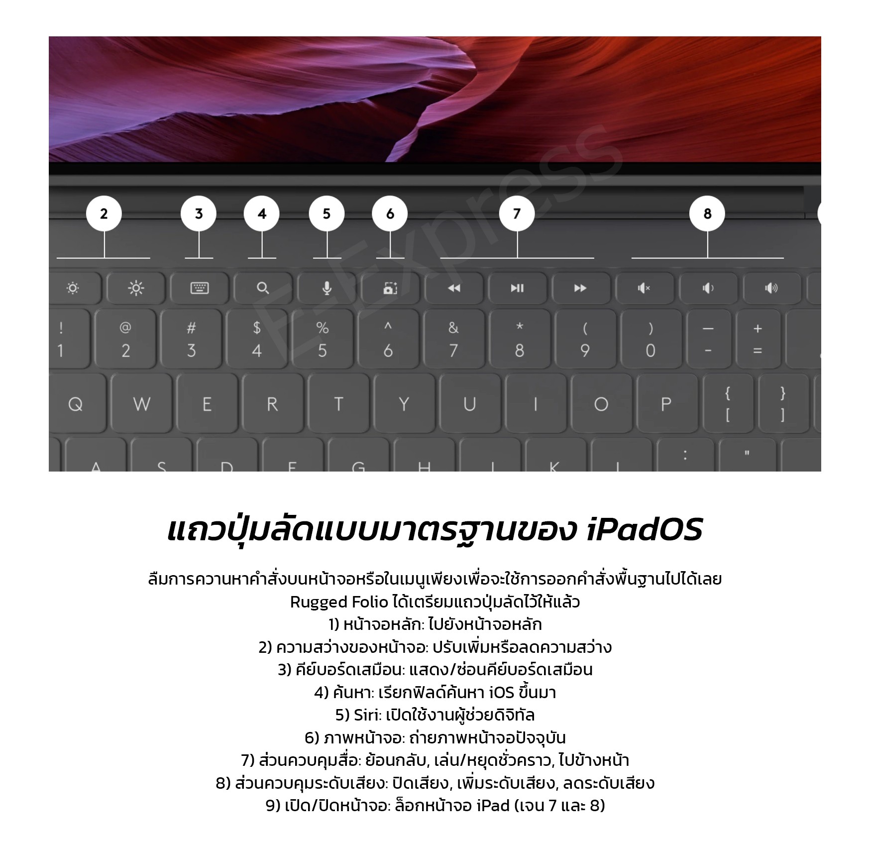 🔹 แถวปุ่มลัดแบบมาตรฐานของ iPadOS