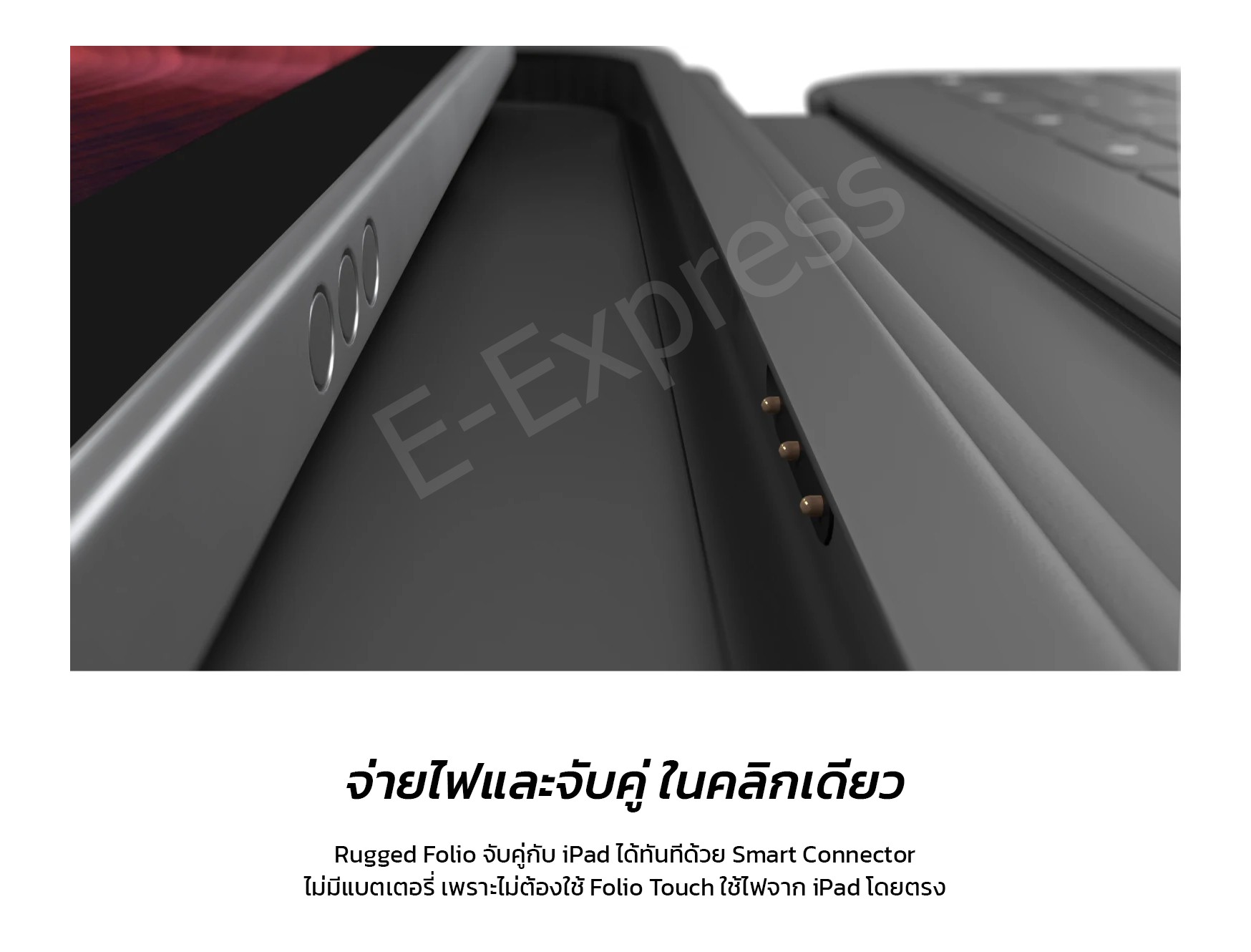 ✅ Rugged Folio ใช้พลังงานแบตเตอรี่จาก iPad ผ่านทาง Smart Connector