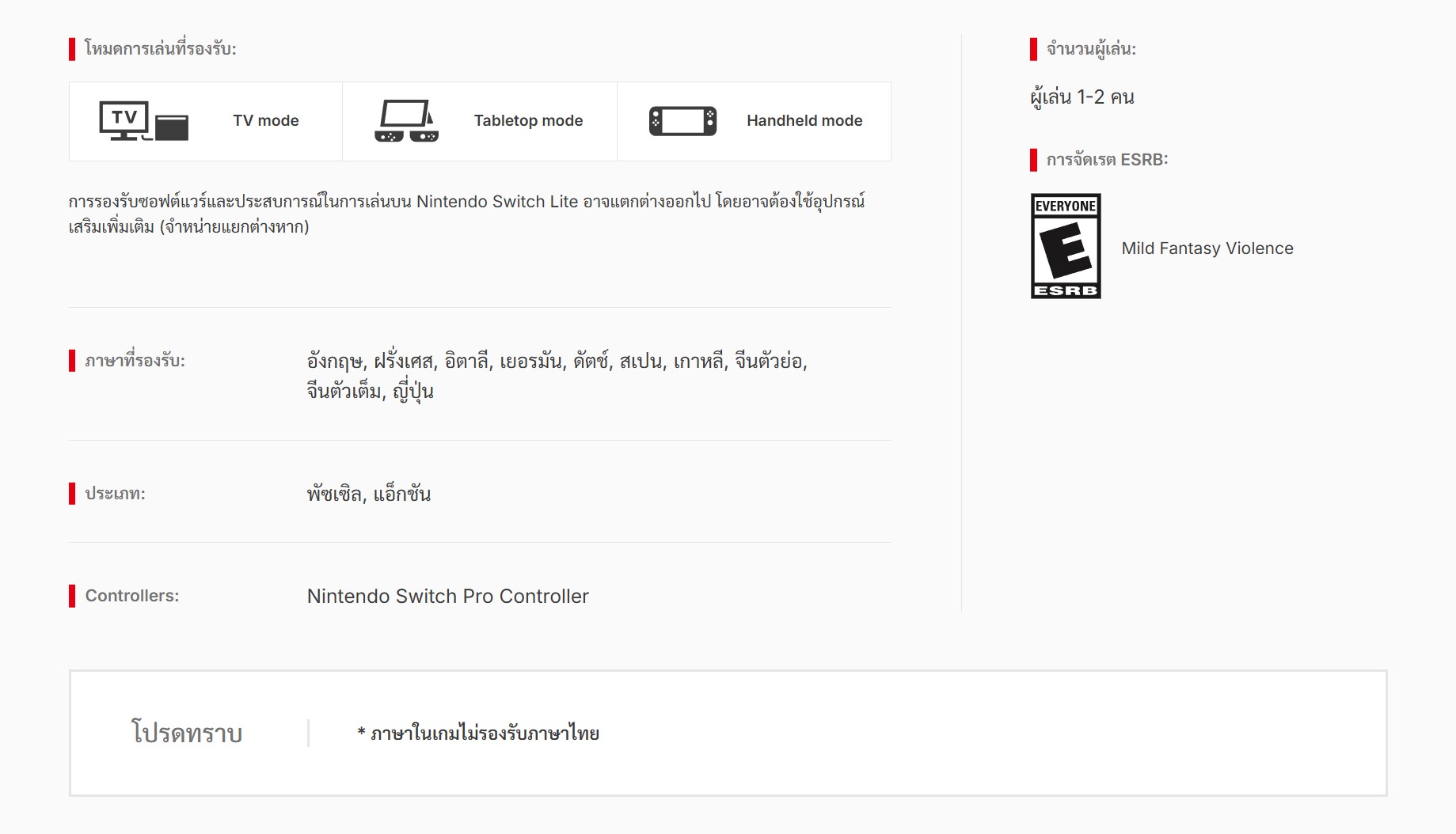✅ *ภาษาในเกมไม่รองรับภาษาไทย