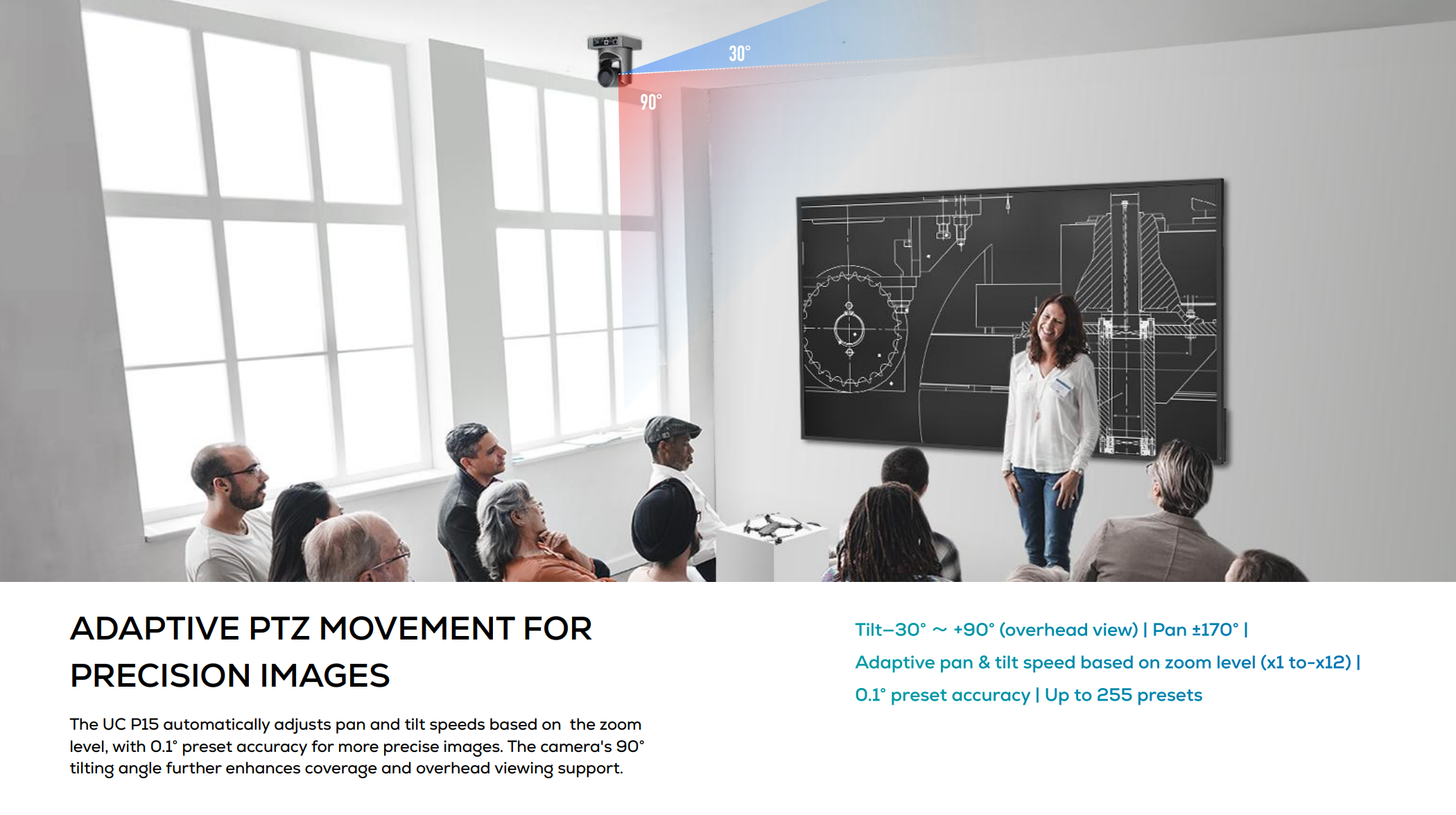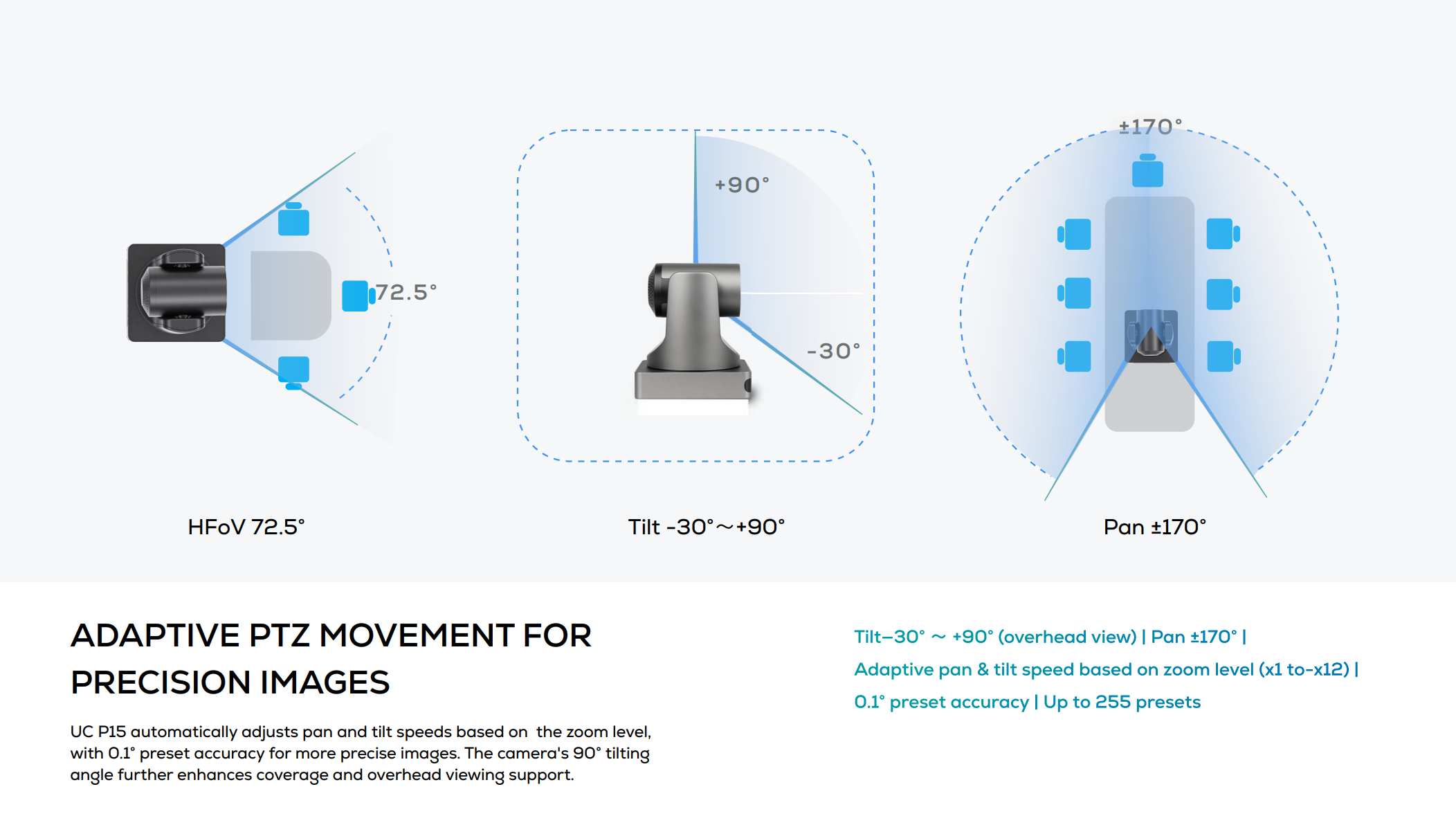 ✅ Horizontal Angle of View :72.5°~ 6.9° ,Pan: ±170°,Tilt: -30° (down) +90° (up)
