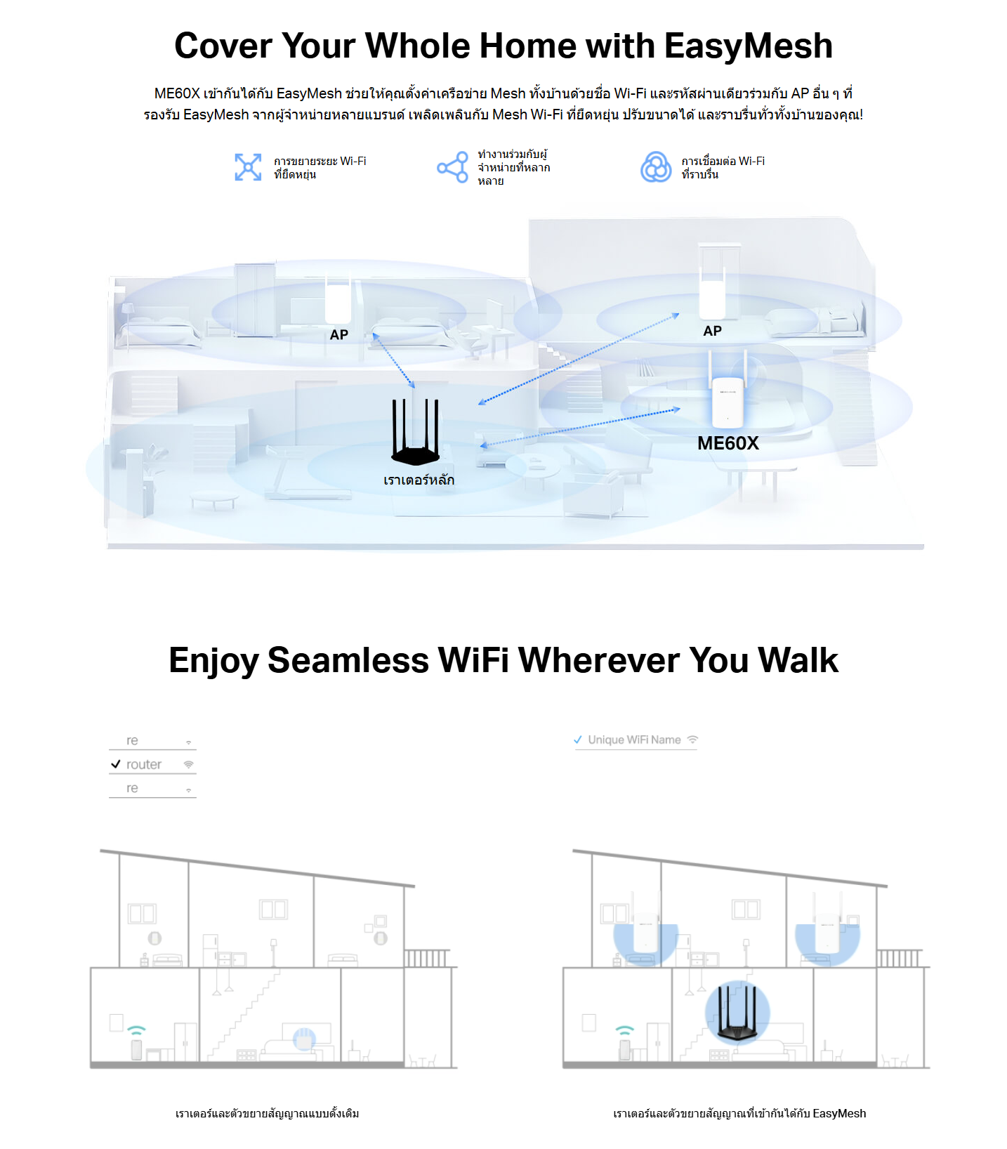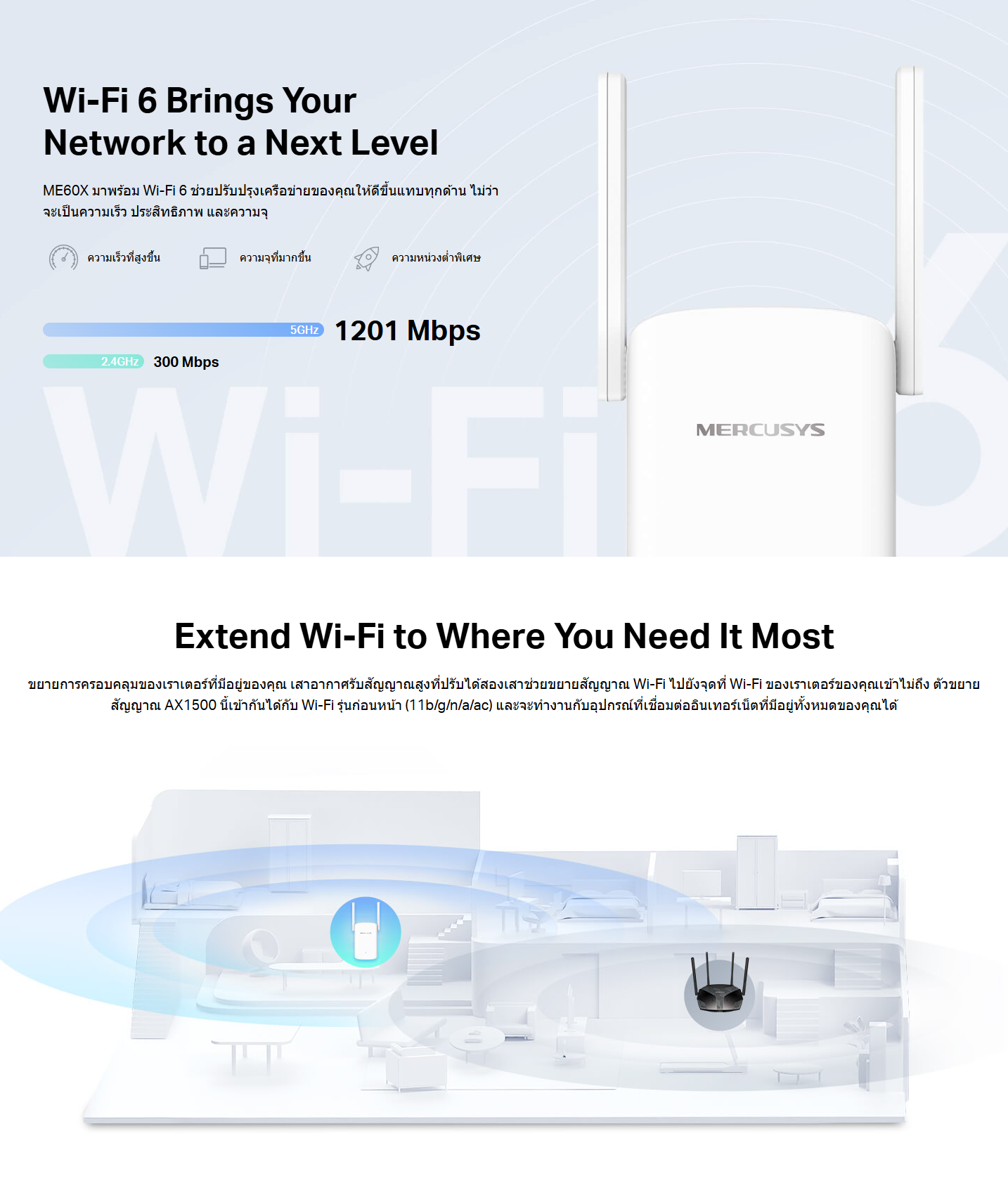 ✅ อัปเกรดการขยายสัญญาณด้วยมาตรฐาน Wi-Fi 6 (AX) เพื่อความเร็ว ประสิทธิภาพ และความจุที่สูงขึ้น