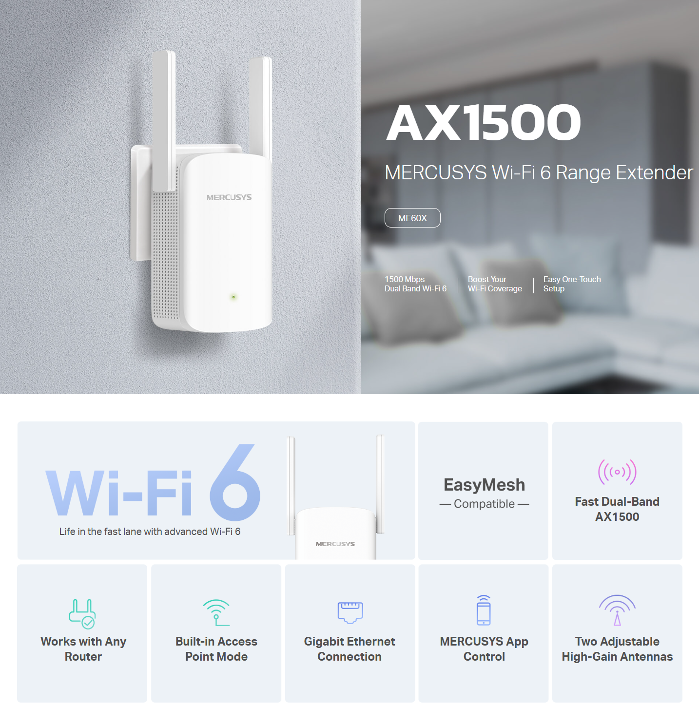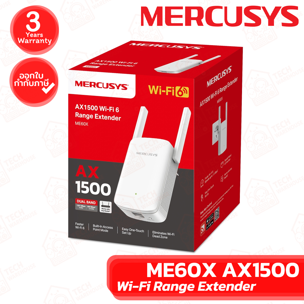 🔶Mercusys ME60X AX1500 Wi-Fi Range Extender อุปกรณ์ขยายสัญญาณ Wi-Fi ของแท้ ประกันศูนย์ 3ปี🔶