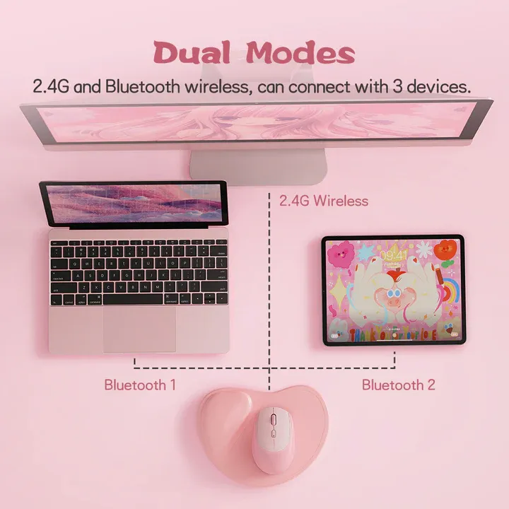 ✅ มีให้เลือก 3สี [Pink,Blue,Cream] ✅ การเชือมต่อแบบไร้สาย 3 ช่องทาง : 2.4G + BT1 + BT2