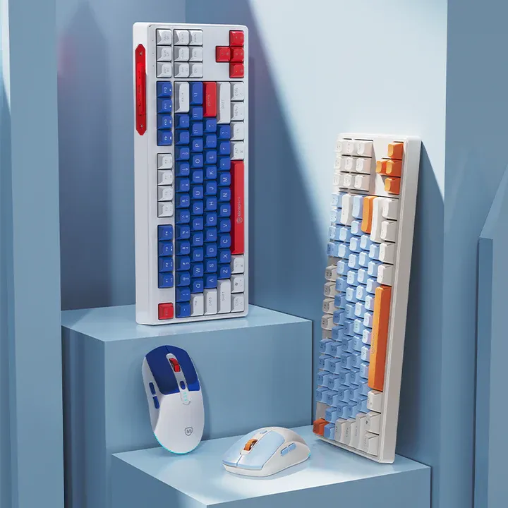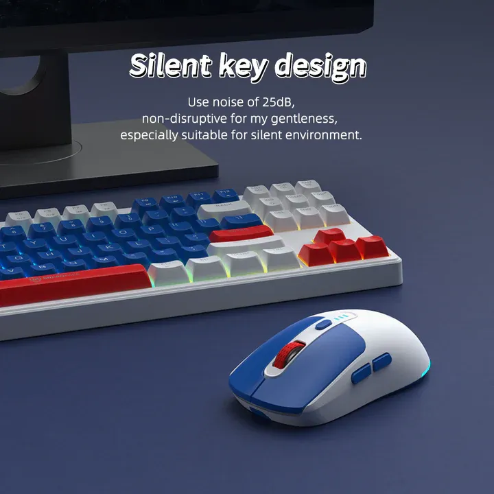 ✅ มีให้เลือก 2สี [Navy,Red] ✅ ชุดคีย์บอร์ดและเมาส์ไร้สายแบบเงียบ