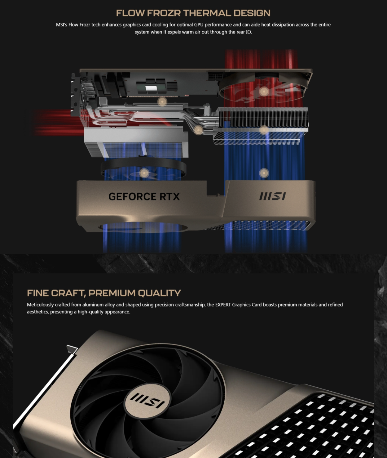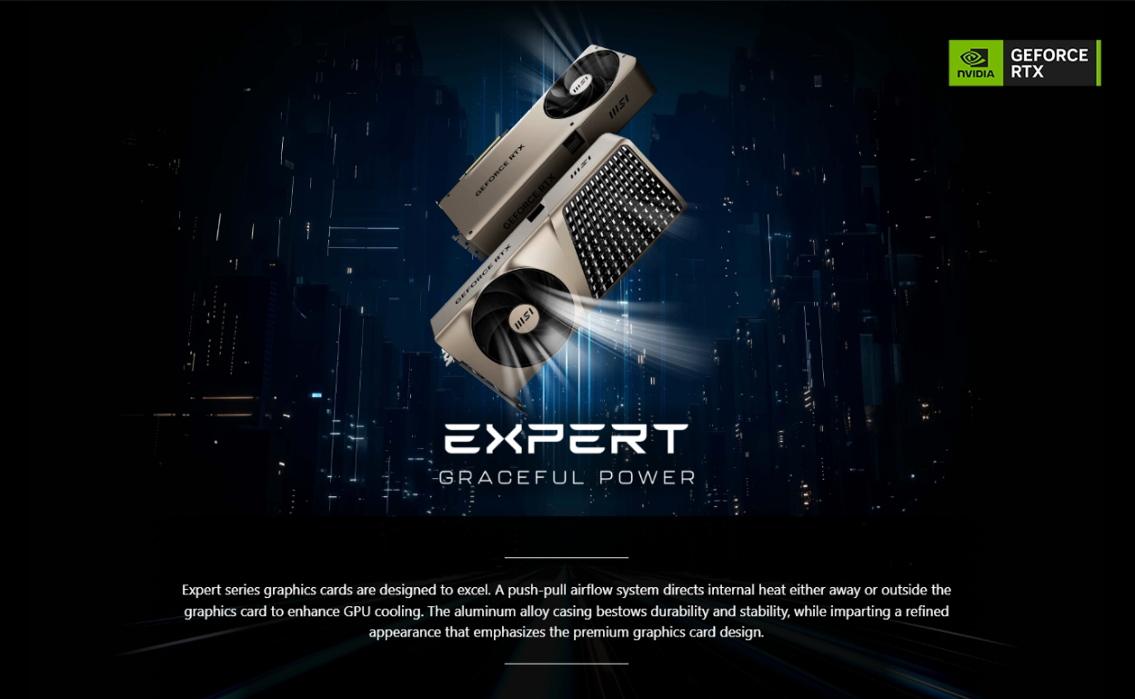 Expert series graphics cards are designed to excel. A push-pull airflow system directs internal heat either away or outside the graphics card to enhance GPU cooling. The aluminum alloy casing bestows durability and stability, while imparting a refined appearance that emphasizes the premium graphics card design.