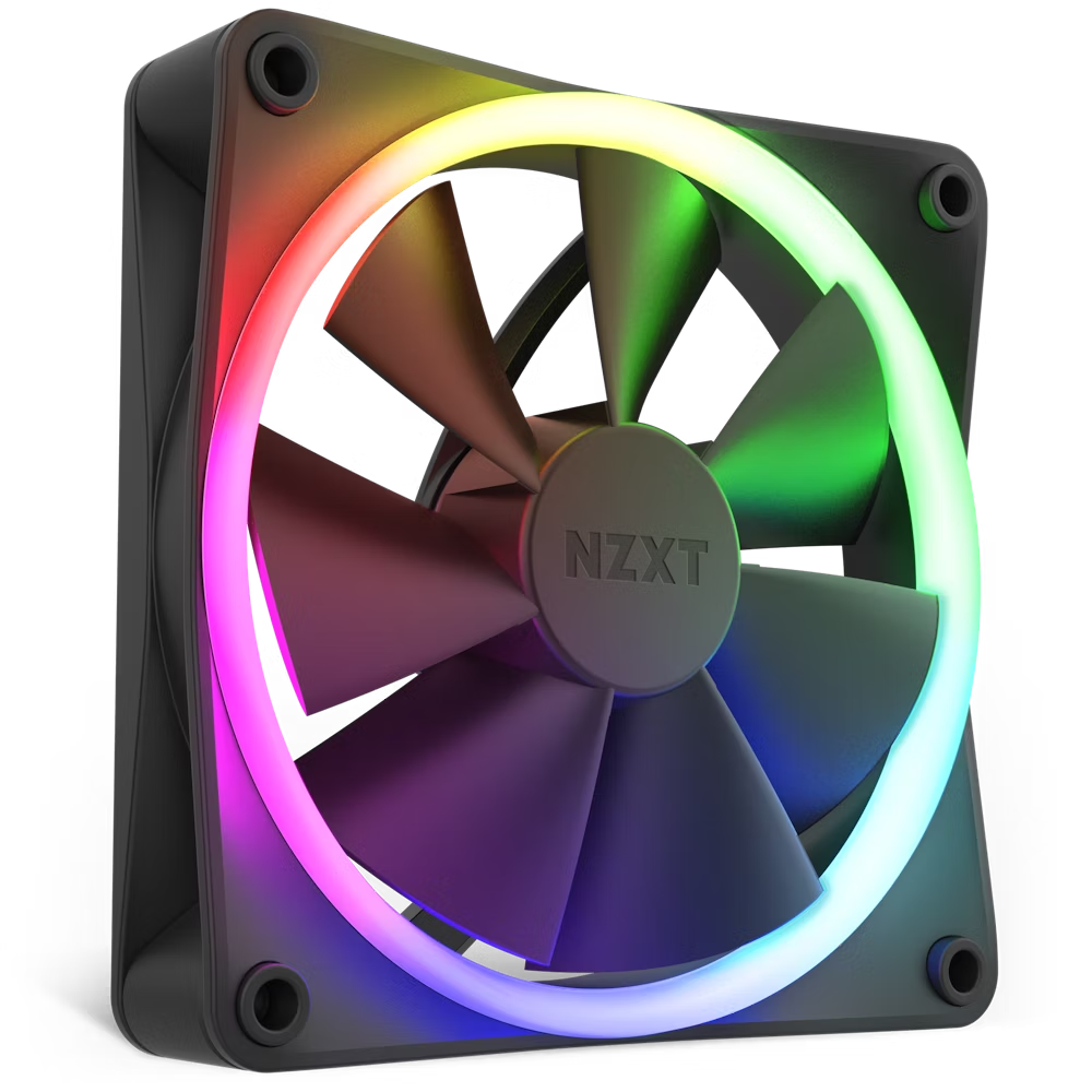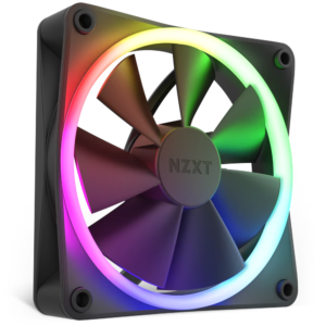 F120 RGB fans provide some flair while keeping things cool. This fan is a high airflow fan that provides ideal airflow for cooling. Fan controls and lighting effects are compatible with NZXT CAM.