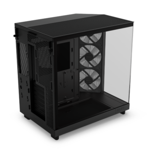Experience peak performance and vibrant RGB within an innovative compact dual-chamber. Prioritizing GPU cooling, the H6 Flow’s panoramic glass showcases the interior while freeing up space for improved airflow.