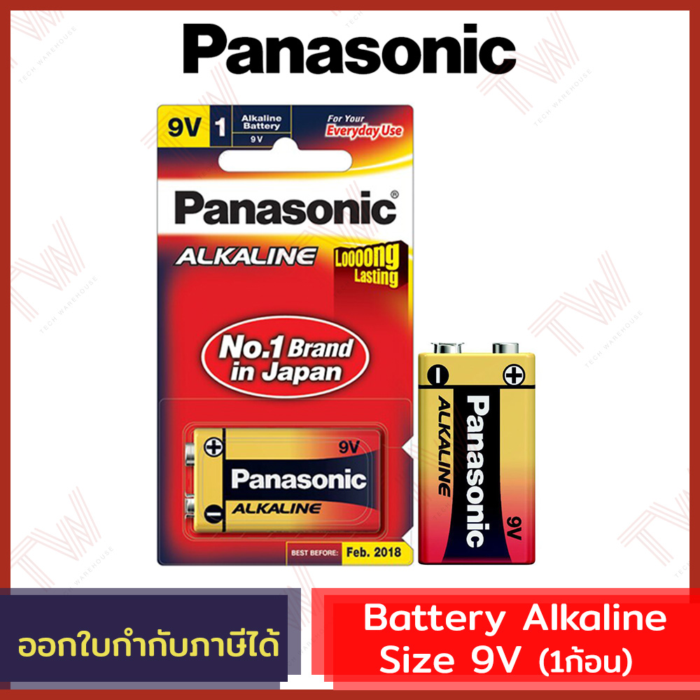 ถ่านอัลคาไลน์ 9V (1 ก้อน) พานาโซนิค 6LR61T/1B ขนาด 9V กำลังไฟ 9 โวลต์ ถูกออกแบบมาให้สามารถนำไปใช้งานกับอุปกรณ์อิเล็กทรอนิกส์ต่างๆ และตอบสนองอุปกรณ์ดิจิทัลที่ต้องการพลังไฟสูงได้อย่างเต็มประสิมธิภาพ เช่น กล้องถ่ายรูปดิจิทัล, เครื่องเล่นเทป/ซีดี/วีซีดีพกพา ฯลฯ ช่วยให้การควบคุมการสั่งงานระยะไกลได้อย่างฉับไว ลื่นไหล ไม่สะดุด เปลี่ยนใช้งานง่าย น้ำหนักเบา พกพาไปสร้างความสนุกของคุณได้ทุกที่ นอกจากนั้นยังได้รับมาตรฐานอุตสาหกรรม ไร้สารปรอทและแคดเมียม จึงมั่นใจในความปลอดภัย ไม่เป็นอันตรายต่อคนและสิ่งแวดล้อม