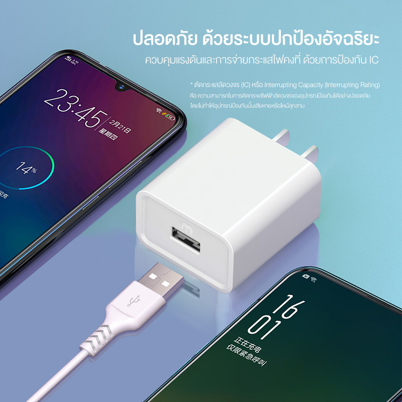 รายละเอียดสินค้า :- ป้องกันการระเบิดจากการชาร์จไว้ กระแสไฟ 2.4A ปลอดภัยและกระแสไฟคงที่