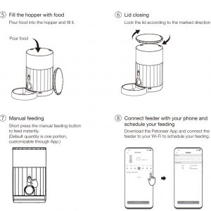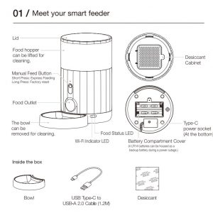 - มีปุ่มสำหรับจ่ายอาหารบนเครื่อง และสั่งได้จากแอพพลิเคชัน