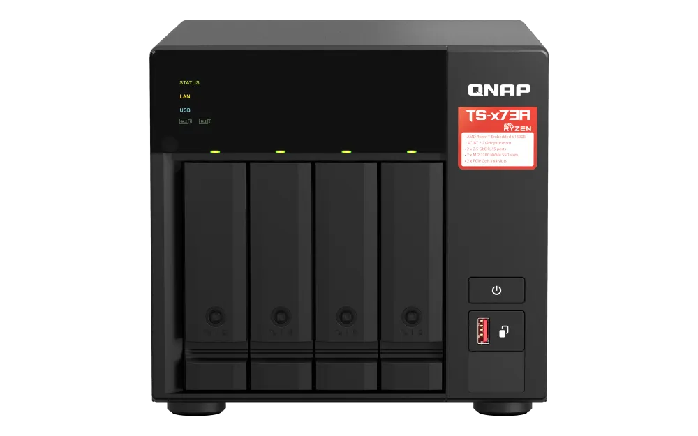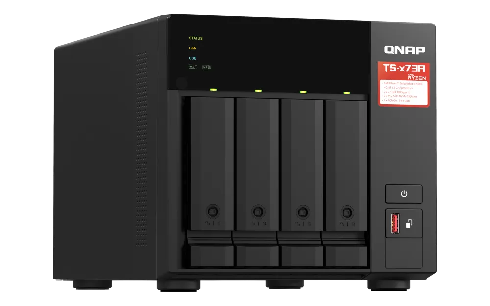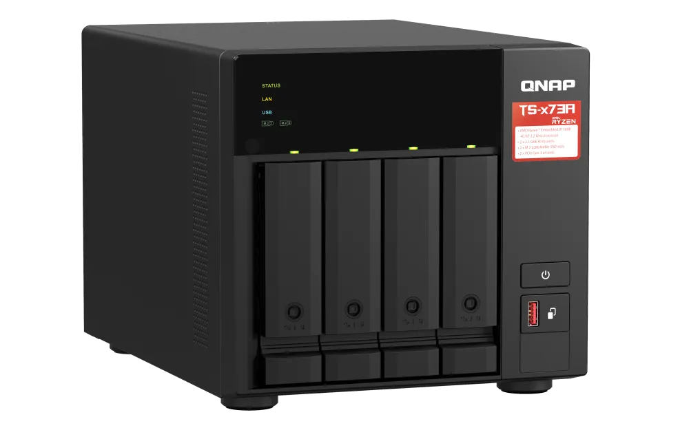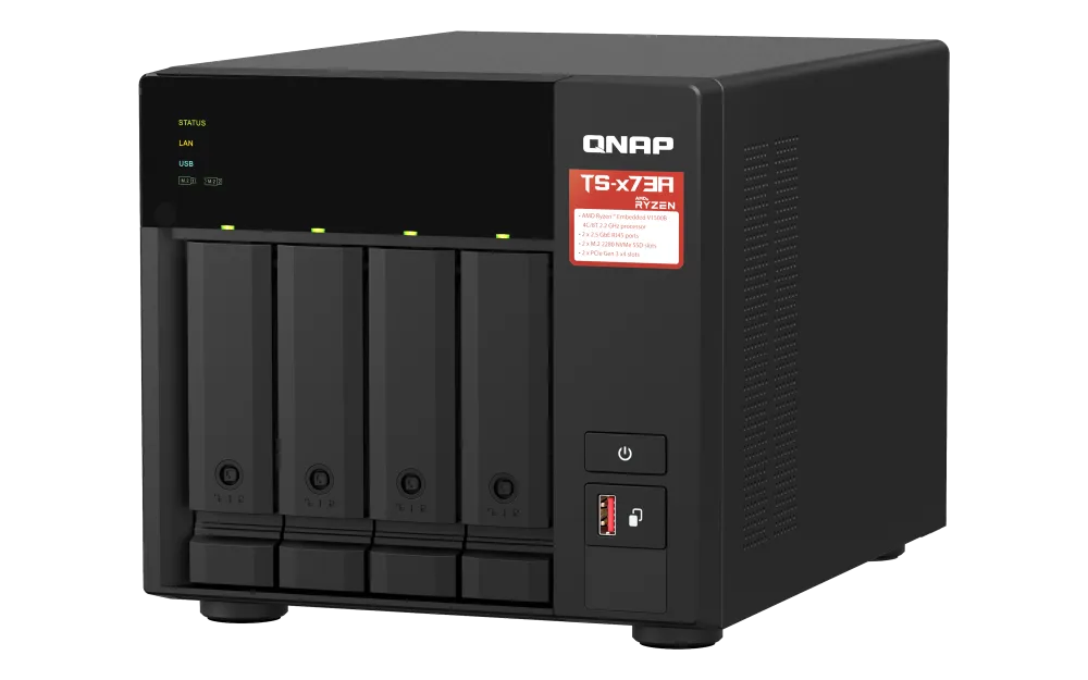 โดดเด่นด้วยโปรเซสเซอร์ AMD Ryzen™ V1000 series V1500B แบบ Quad-Core ที่ช่วยเพิ่มประสิทธิภาพของระบบได้สูงสุดถึง 4 คอร์ / 8 เธรด และ Turbo Core สูงสุดถึง 2.2 GHz TS-473A มีพอร์ต 2.5GbE RJ45 สองพอร์ตและสล็อต PCIe Gen 3 สองสล็อต เพื่อให้คุณปรับใช้เครือข่าย 5GbE/10GbE ได้อย่างยืดหยุ่น สล็อต M.2 NVMe SSD สองสล็อตสำหรับเทคโนโลยี Qtier และการแคชบน SSD ทำให้สามารถการปรับที่เก็บข้อมูลให้เหมาะสมได้อย่างต่อเนื่อง TS-473A รองรับทั้งระบบปฏิบัติการ QTS และ QuTS hero จึงทำให้ผู้ใช้สลับระบบปฏิบัติการได้อย่างยืดหยุ่นตามที่ต้องการ
