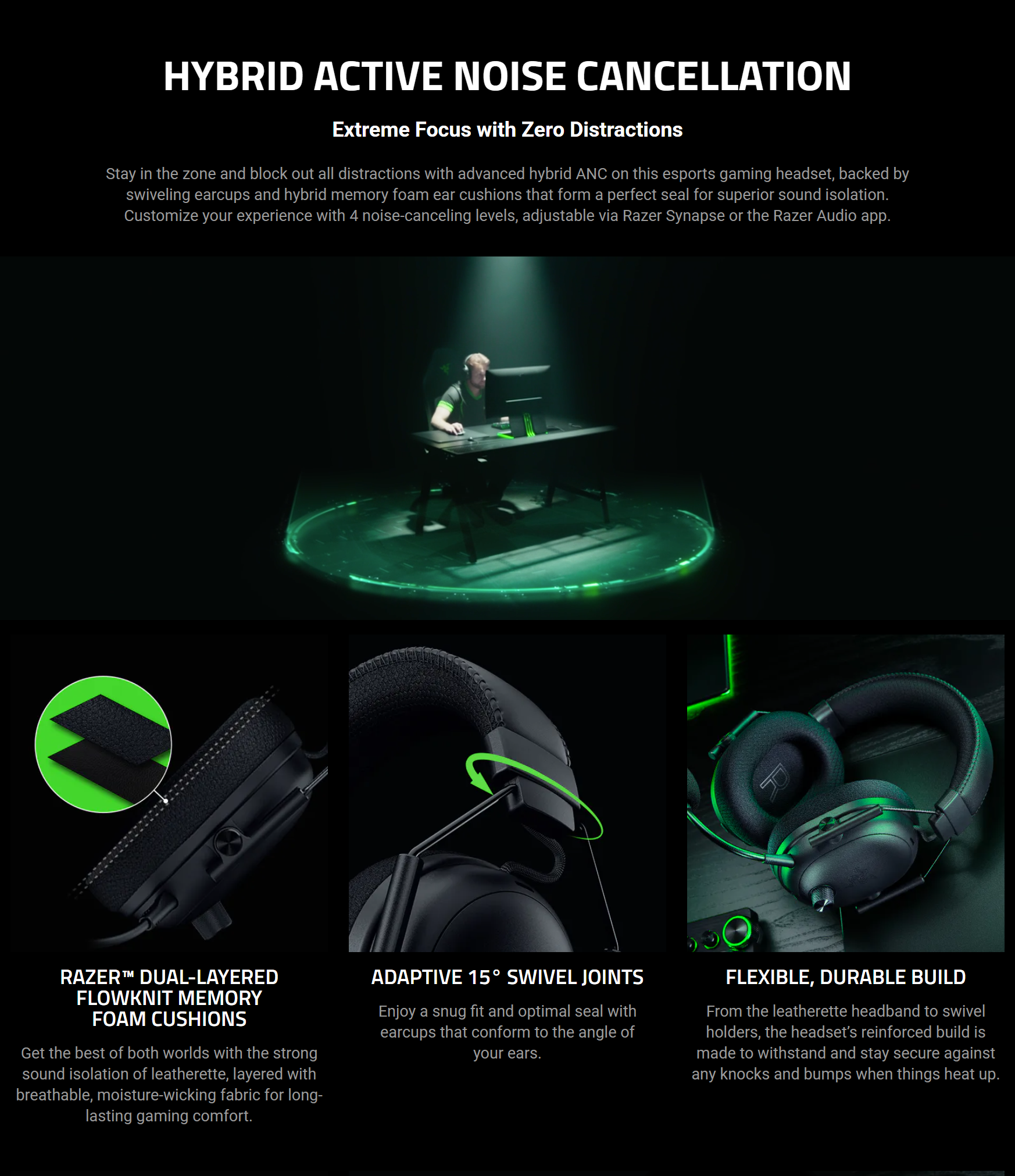 ✅ Hybrid Active Noise Cancellation ระบบตัดเสียงรบกวนแบบแอคทีฟช่วยเพิ่มโฟกัสในการเล่นเกมส์