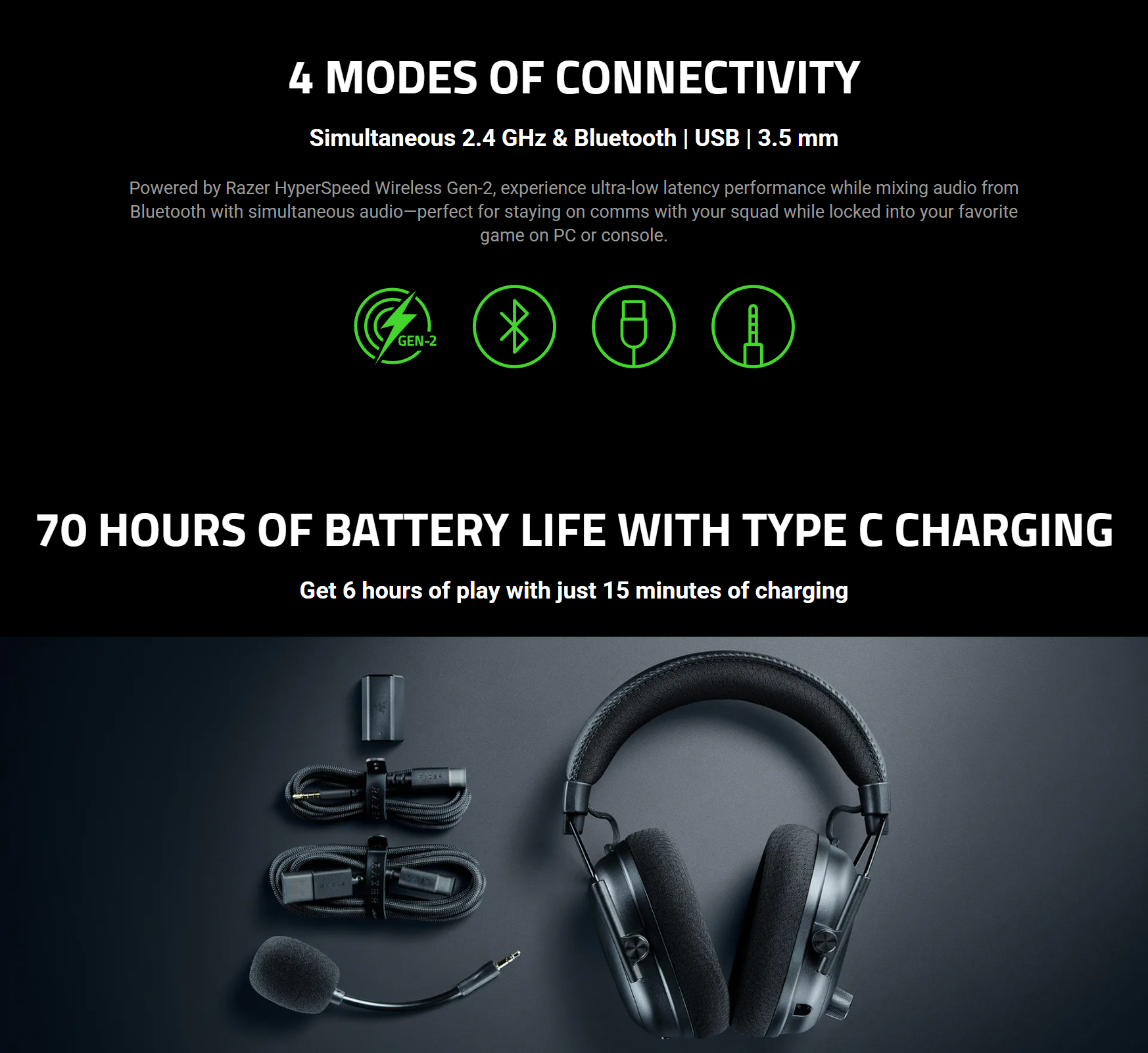 💠 Battery life – Up to 70 hours (2.4 GHz Connection)
